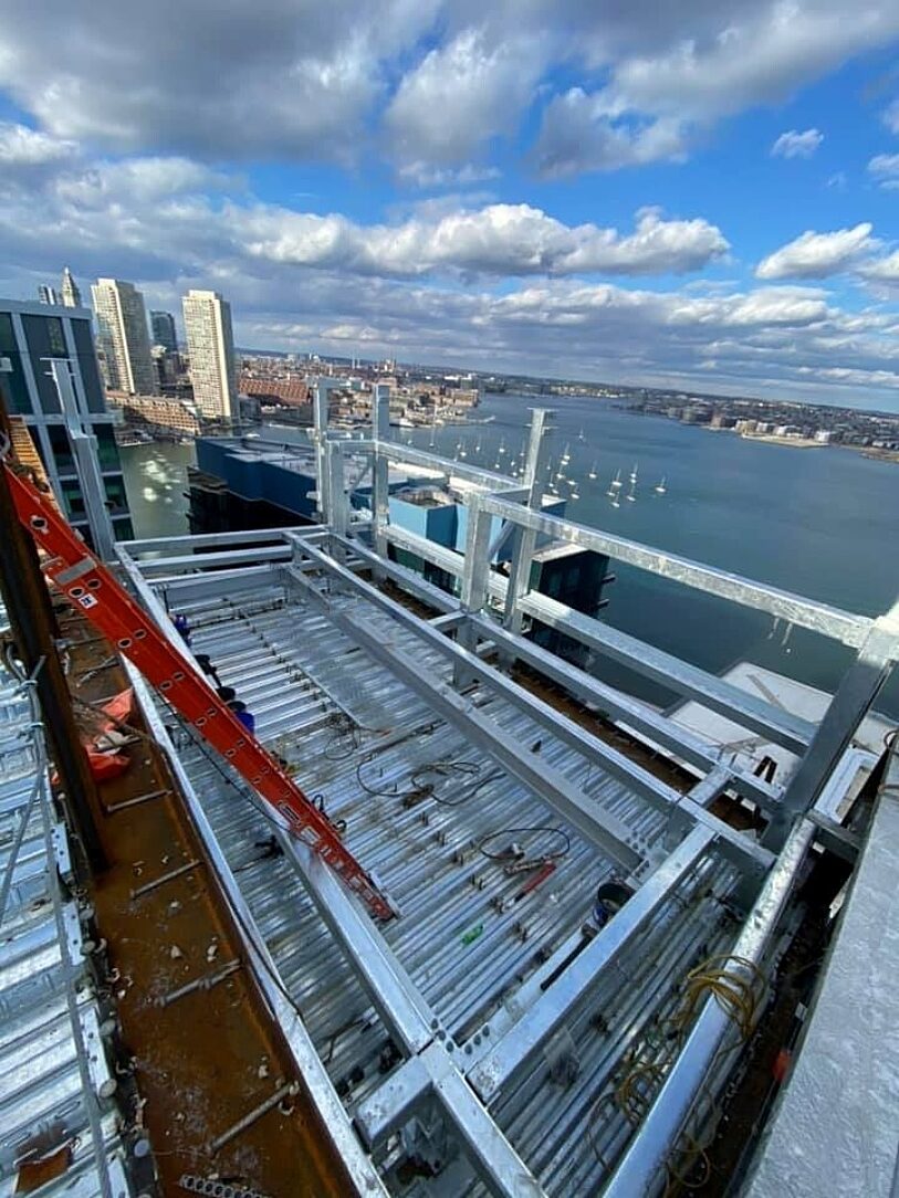 Literally jumping distance from the sea water of Boston Harbor, corrosion was a real concern with Boston’s wet, cold, maritime climate. This was of particular concern to the specifiers for the 110 tons of exposed roof top structures including vanity screening that would be acutely visible from surrounding buildings. With its enviable track record of reliable long service life and unbeatable cost to benefit ratio, hot-dip galvanizing was chosen after careful study of the alternatives.