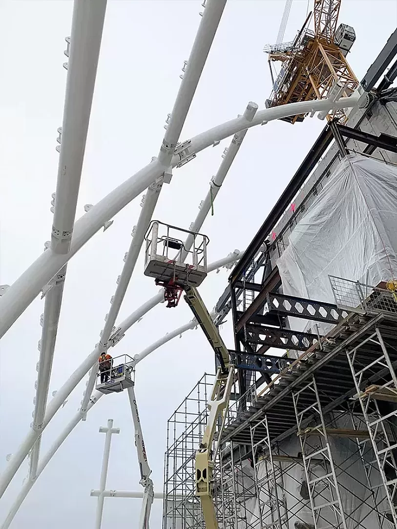 The most remarkable feature of the project is the crown that shelters the mechanical and Building Maintenance Unit (BMU) components. The complex design of the crown required meticulous structural work and a protective coating that would be able to withstand the harsh environmental conditions. Stability of the structure was paramount and after considering other options for protection, galvanizing stood above the rest due to its durable and long-lasting benefits. Along with durability, galvanizing reduces the need for frequent touch-ups compared to traditional paint coatings. The adaptability of galvanized steel allowed the team to efficiently address the intricate design and size challenges posed by the project.