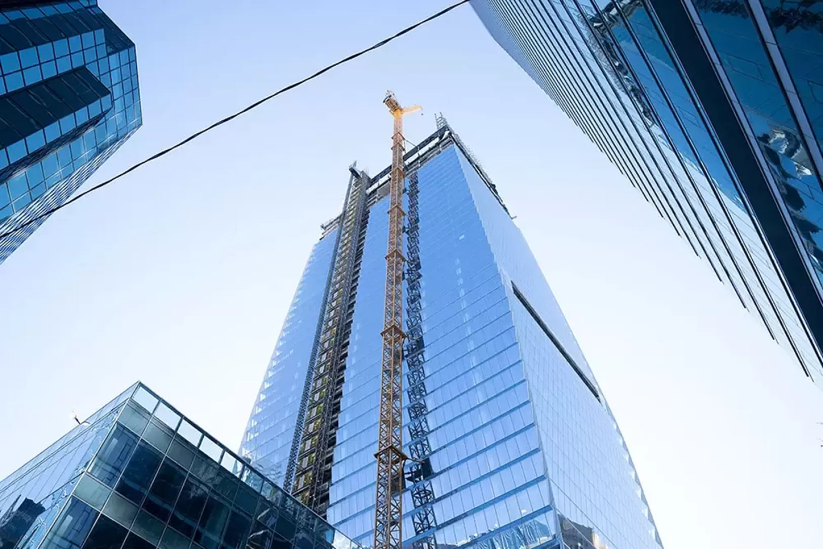 Glass and steel surround the structure, serving both aesthetic and practical purposes. The structure strategically channels lateral forces to its central axis, resulting in a tapered shape that optimizes wind resistance while offering unobstructed corner views. As for the size and caliber of the project, the vast gross floor area is nearly 1.2 million square feet.