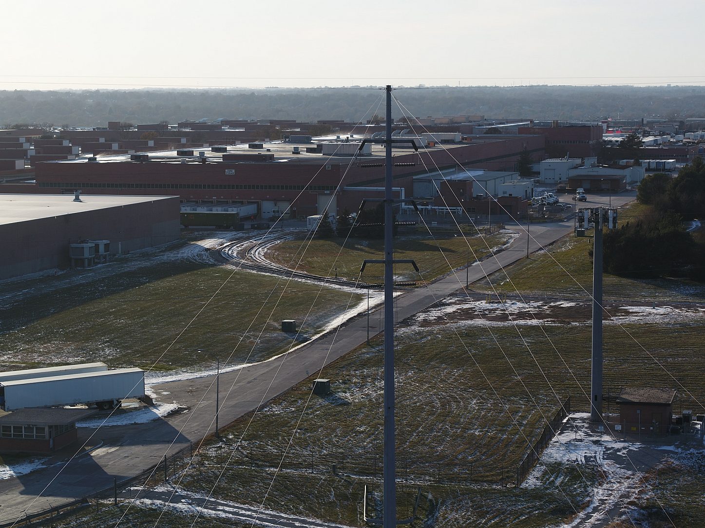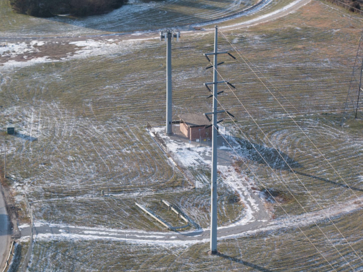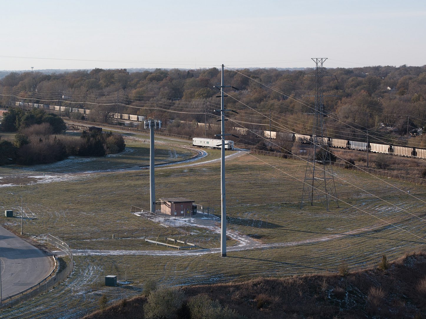 OPPD erected this 120-foot tall galvanized octagonal electric transmission pole in 1971. It was designed to handle 161 kilovolt conductor cables, plus one half inch of ice, and to withstand punishing winds of 40 pounds per square foot on the cables and pole.