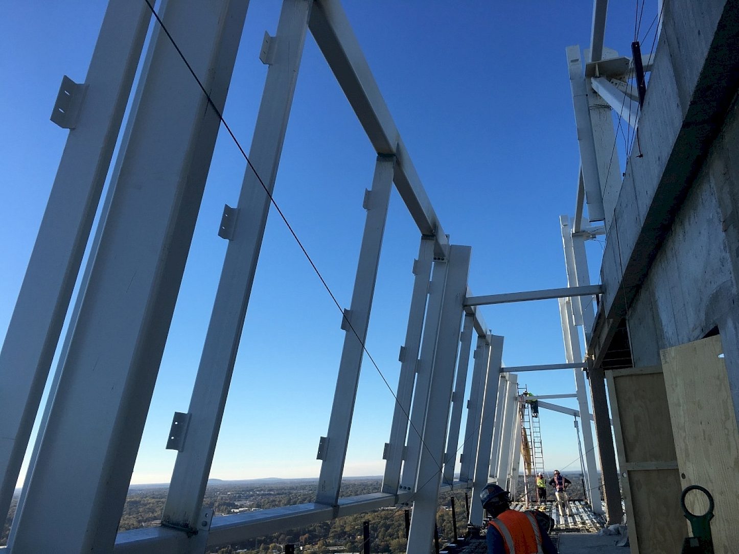 When duplex system is specified, there is a synergistic effect among both the galvanizing and paint system coating. The corrosion protection will wind up being 1.5 to 2.3 times the sum of the expected life of each coating system. In this specific case of 300 South Tryon we could easily expect the life expectancy to be well over 100 to 150 years on this roof structure.