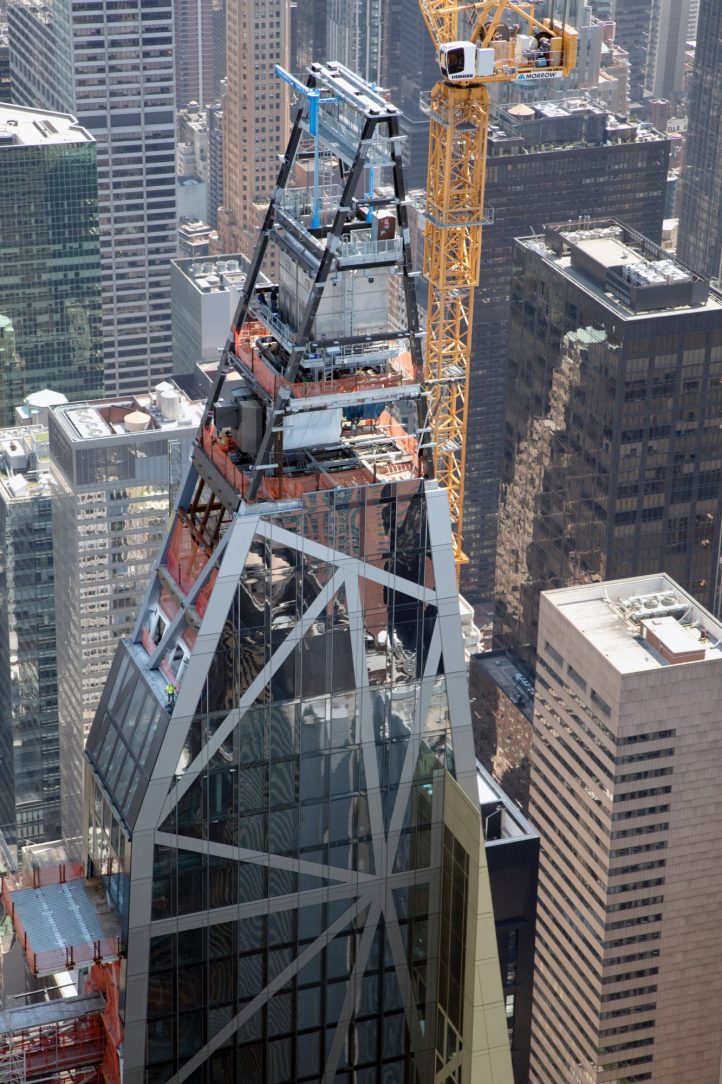 Constructing the building took a lot of patience, as the project was originally planned in 2006 but then abandoned and delayed. It was eventually revived in 2013 and construction was finished in 2018. The installation of the building’s unique “diagrid” façade also took extra communication and logistics as the hot-dip galvanized beams and façade panels had to be loaded so that when they arrived they could be off-loaded in the correct order. Once on site, the beams were hoisted 60 stories into the air for the iron workers. It was critical to ensure the correct beams were lifted to their final destinations as the puzzle was pieced together around the building.