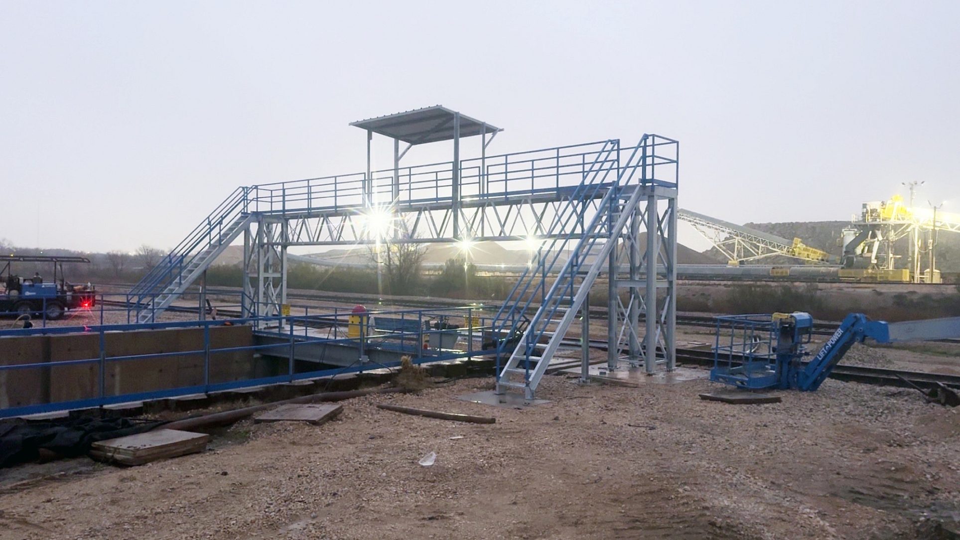 In addition to processing equipment, Plant Fabricators Inc. was also tasked with designing a small bridge to span an open section of the conveyor system. This bridge supports the weight of rail cars loaded with aggregate material and is subjected to the same corrosive water exposure as the rest of the plant. With heavy structural steel members carrying dynamic loads, long-term corrosion protection was critical to maintaining structural integrity and operational safety. Hot-dip galvanizing was selected to provide robust protection for this bridge, ensuring decades of service without significant maintenance interruption.