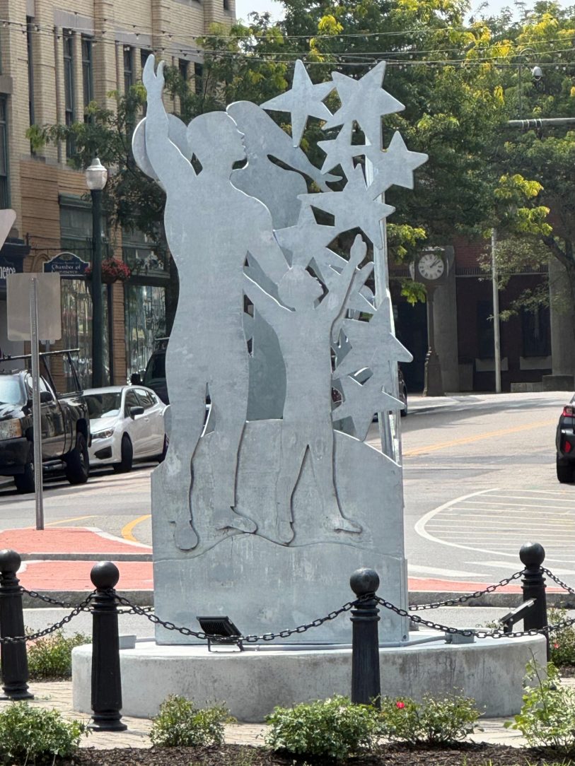"This sculpture was created to celebrate the spirit of Norwich—its people, stories, and future. While not a memorial, Promised Day is a contemporary reflection on shared values: family, community, nature, and creativity." - D Derek