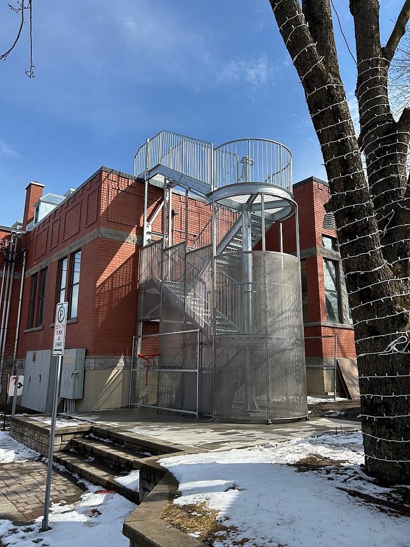Long overdue renovations called for safety enhancements that included fire escapes and access ramps, and the challenge was to do this very cost efficiently while also preserving the historic visual charm of the library. These two priorities led to the decision to install these features externally rather than enclosing them in a way that would have greatly increased costs and destroyed the original architectural appeal of the building.