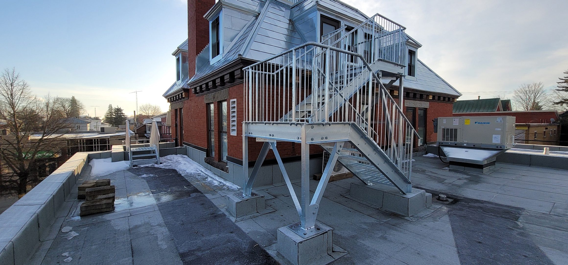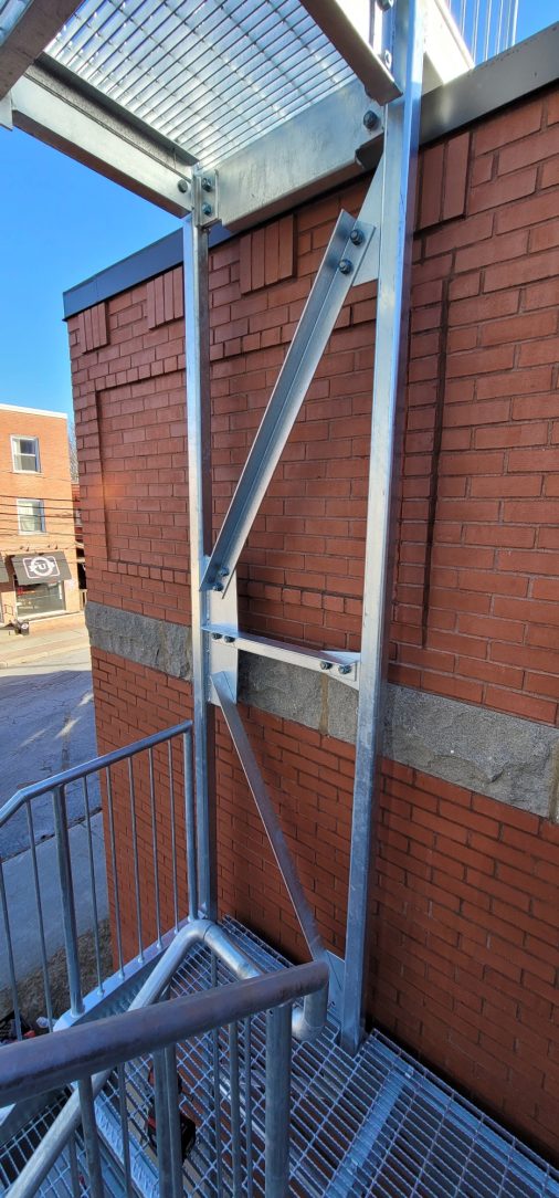 All exterior steel components including supports, stairways, handrails and accessories.