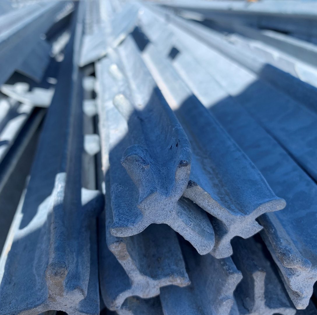 Made from re-rolling High Carbon 100 % recycled Rail Steel, the T-Post is extremely strong with a average tensile strength of 128,000 pounds and a average yield of 78,000 pounds. T-Post can be painted or Galvanized, depending on the environment the T-Post will be exposed to. The Galvanized T-Post provides the extra protection where a farm or ranch is exposed to salt air, heavy containment of livestock, or just to add years of life to the T-Post.