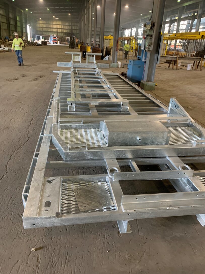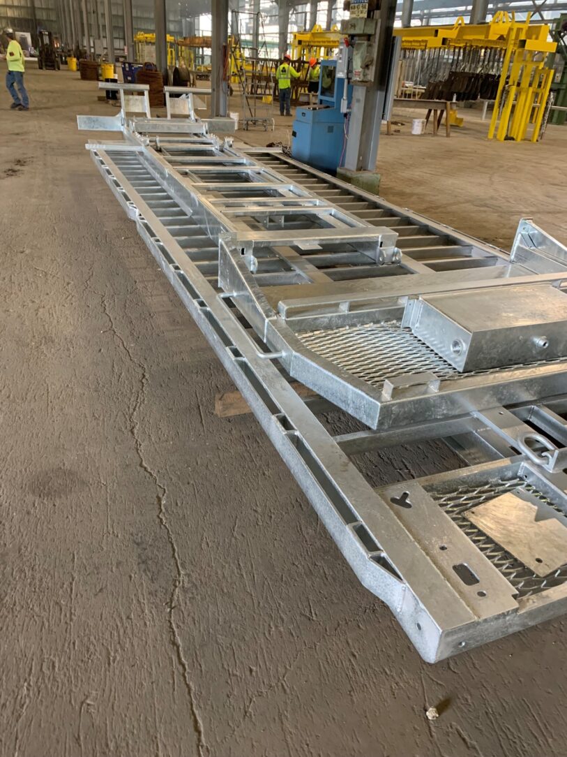 For a recent project, AEP brought a flatbed trailer to a local galvanizer for protection. The main body of the roll back bed, sub-frame, and cab protector were galvanized to greatly prolong its life in anticipation of the conditions it would be put to work in. In addition to corrosion protection, the immersion process of hot-dip galvanizing allowed the zinc to reach areas paint could not cover. Items such as the box tubing were therefore protected inside and out. The galvanized finish is also very durable and abrasion resistant so it will not only perform well but look good as well.