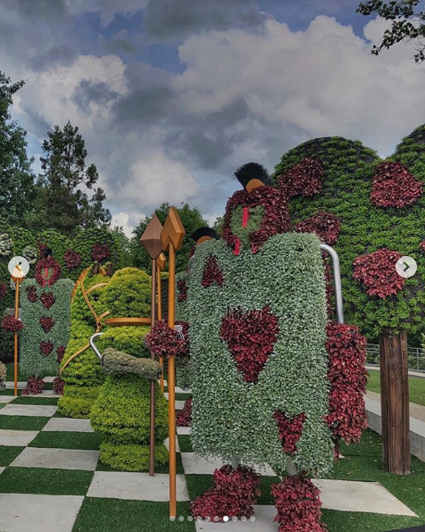 Atlanta Botanical Gardens has developed a worldwide reputation for spectacular eco-sculptures especially in its Imaginary Worlds series. In 2019, the biggest display yet opened, with the theme of “Alice’s Wonderland.” Thirty-one new eco-sculptures large and small grace the property and this Imaginary Worlds Exposition again broke attendance records.