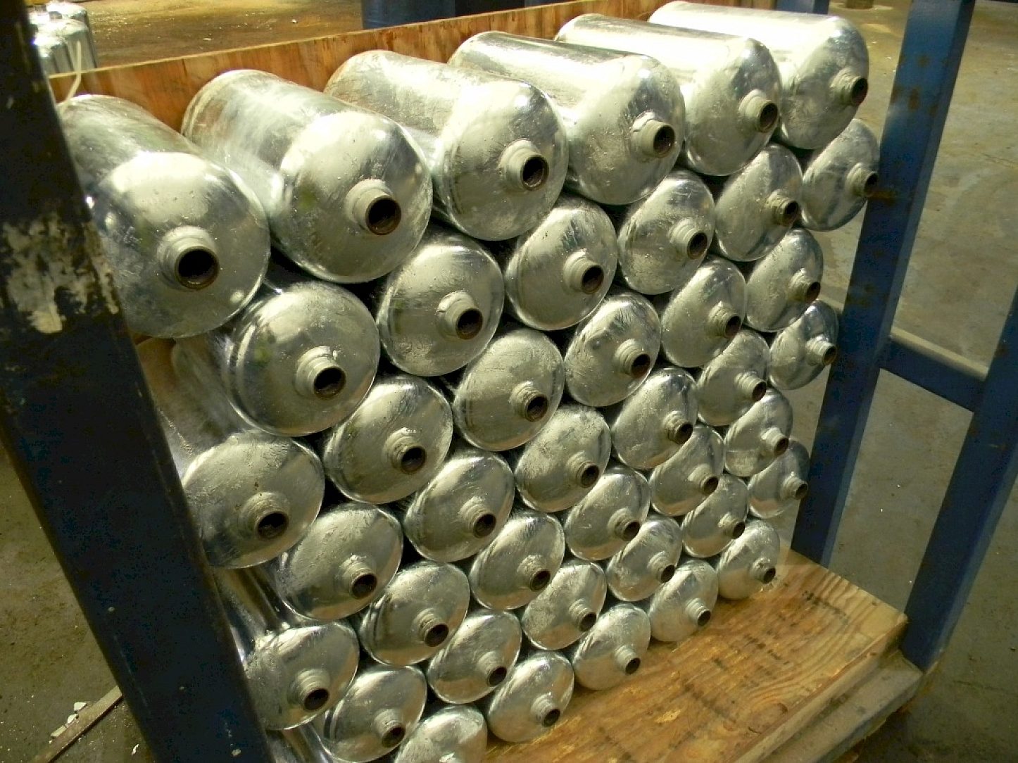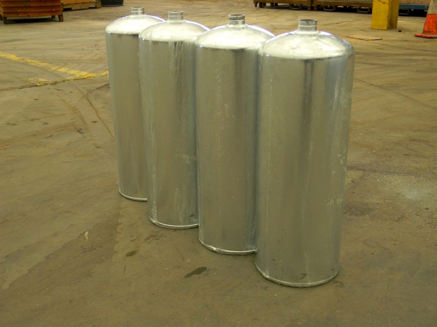 The process begins with the drawn steel cylinders being blasted to white metal, the cylinders are then hot -dip galvanized with a proprietary process to ensure outside coverage of the cylinders and superior corrosion protection, and finally the cylinders are prime-painted and finished with high gloss polyester powder paint. Amerex offers not only hot-dip galvanized cylinders, but also carriages, wheels, and has expanded to offer larger wheeled units. The combination of hot-dip galvanizing and the duplex paint system allows them to offer a 12 year warranty, the best in the industry, on their products.