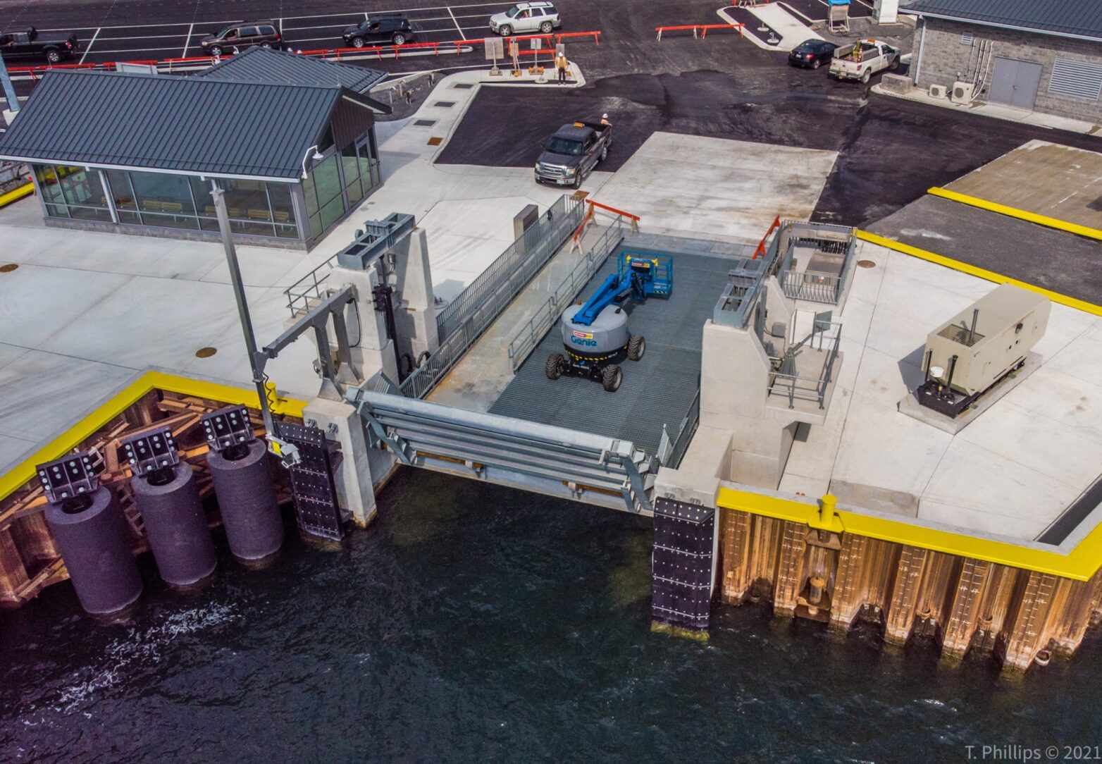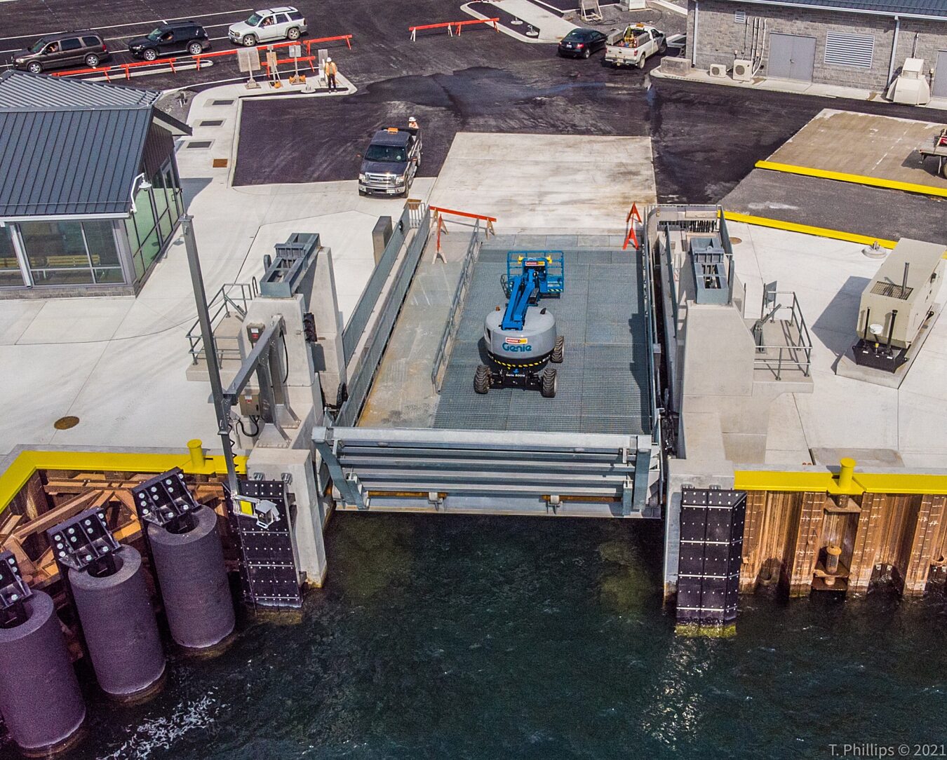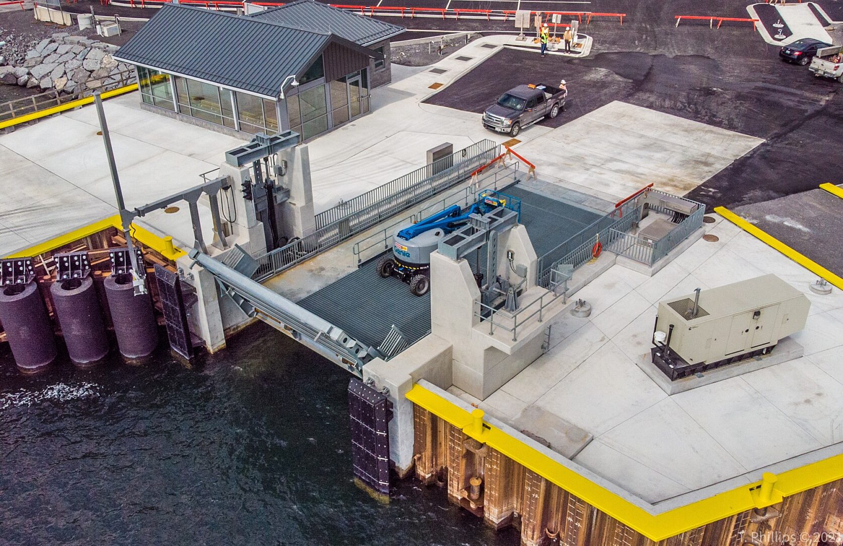 After thorough consideration of the available options, hot-dip galvanized steel was selected for the Ferry Ramps, Aprons, Hydraulic & Pinning Brackets, Railings and Ladders. Through decades of research, galvanized steel is recognized as one of the best methods of corrosion protection for submersed applications due to its complete, uniform coverage. The longer life span compared to alternative options means less interruptions and costs due to maintenance and/or replacement. Furthermore, hot-dip galvanizing provides a clean, non-obtrusive aesthetic, allowing the structures to blend in well with its surroundings.