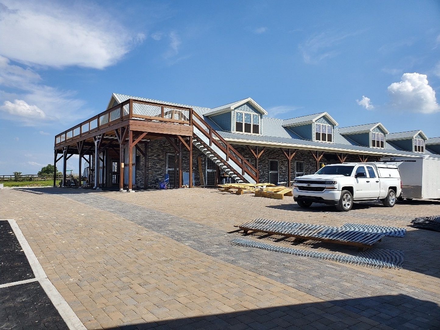 Pete’s plan was to create a place that any traveling competitor can house, train, bath, run, groom, and or purchase their next champion. The goal was to create something that encompassed and exhibited the passion that he had for his sport that was efficient, durable, and memorable. He wanted something that would not only look appealing as you pulled in to the 39 acre lot, but a place that made you want to come back to train or purchase your next champion. The farm sits atop one of the rolling hills just north of Lexington, KY. As you take the gravel horseshoe-shaped drive up to the farm you can see 16 corrals, 2 outdoor arenas, a horse walker, the large barn, as well as the smaller grooming barn. There is a patio out back along with a mezzanine that overlooks the entire farm which will eventually host events and functions, as well as make anyone visiting feel like a VIP. Any Day Now Farm is not just a pit stop for a four legged competitor, but will someday be the home of mini boutique horseshows.