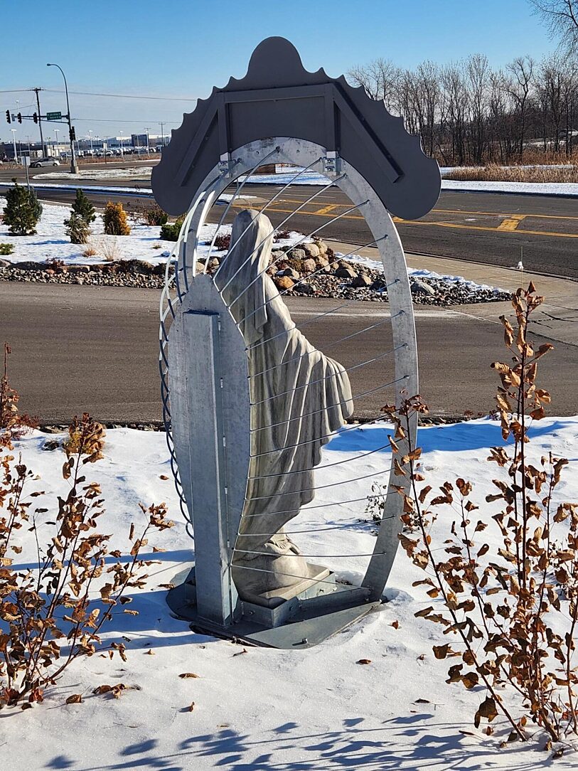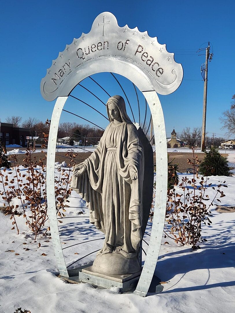 Mary, Mother of Jesus in her new home. When Mary Queen of Peace Church in Rogers, MN had a vision of a statue to greet visitors, they wanted it to last. A local man, and member of the church, brought the vision to reality.