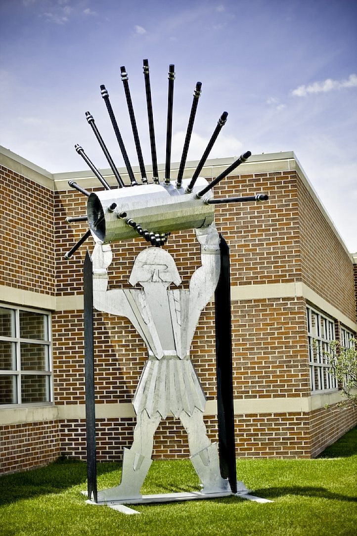 Shining strongly, the Archimedes of Syracuse sculpture is displayed in Omaha. The artist, Ron Parks, wanted to pay homage to the creator of the lever with this sculpture and also wanted to display his work of art outside without having to worry about the maintenance that comes with painting steel.