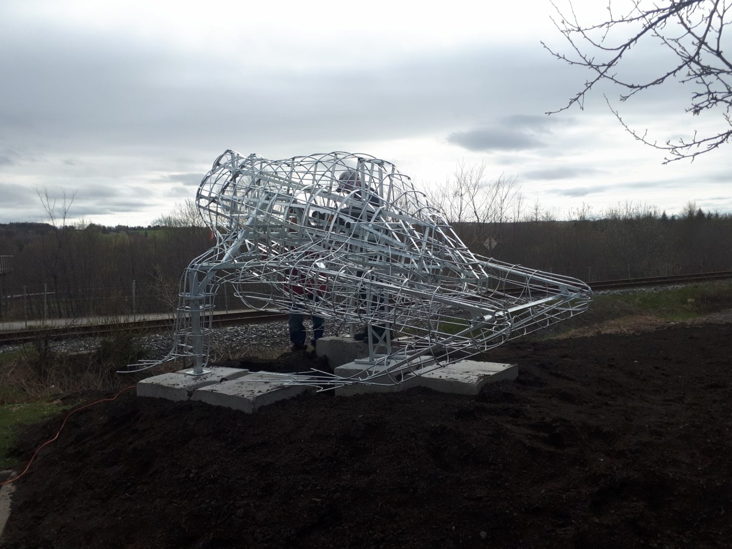 The entire structure, a mosaic of HSS tubing, flat bar and plates, rebar, angles and pipe were galvanized in a single dip.