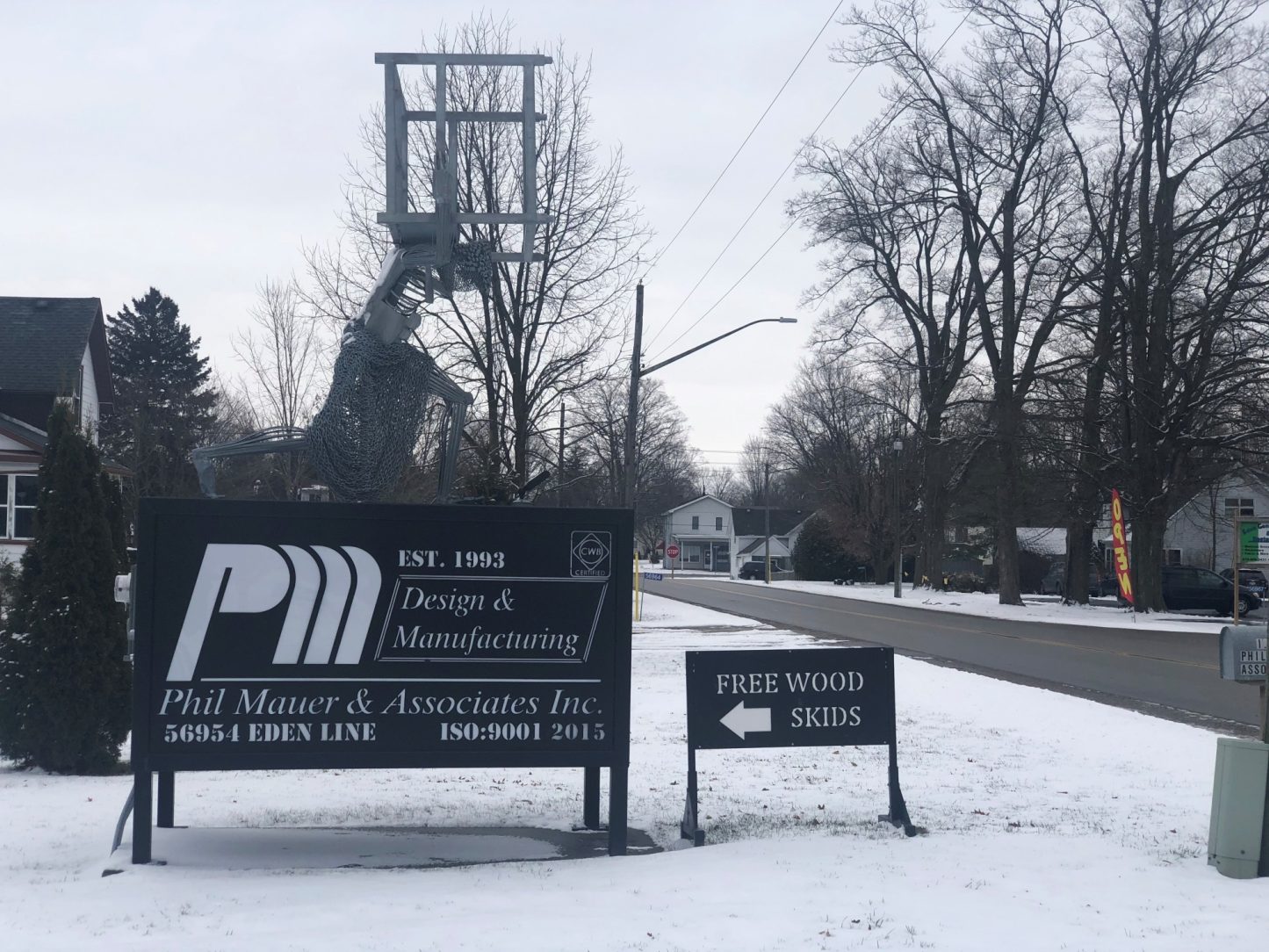 The original sculpture, which was painted with a water-based paint, was created for a competition. After being awarded second place, Atlas Man was moved to its new home at the end of the driveway of Phil's business. The hard Ontario winters quickly began to take their toll on the statue after a short time due to the inferior protection offered by the first paint system.