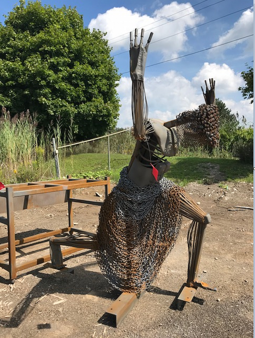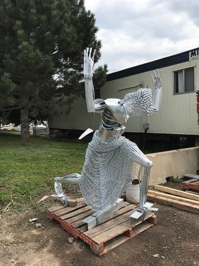Taking the statue back into the shop, repairs began. Lots of turns and bends and the complexity of the piece made the proper fabrication for galvanizing more challenging than that required for paint. Working together with the galvanizer, modifications were made to ensure the best fabrication methods were used to attain the best possible finish.