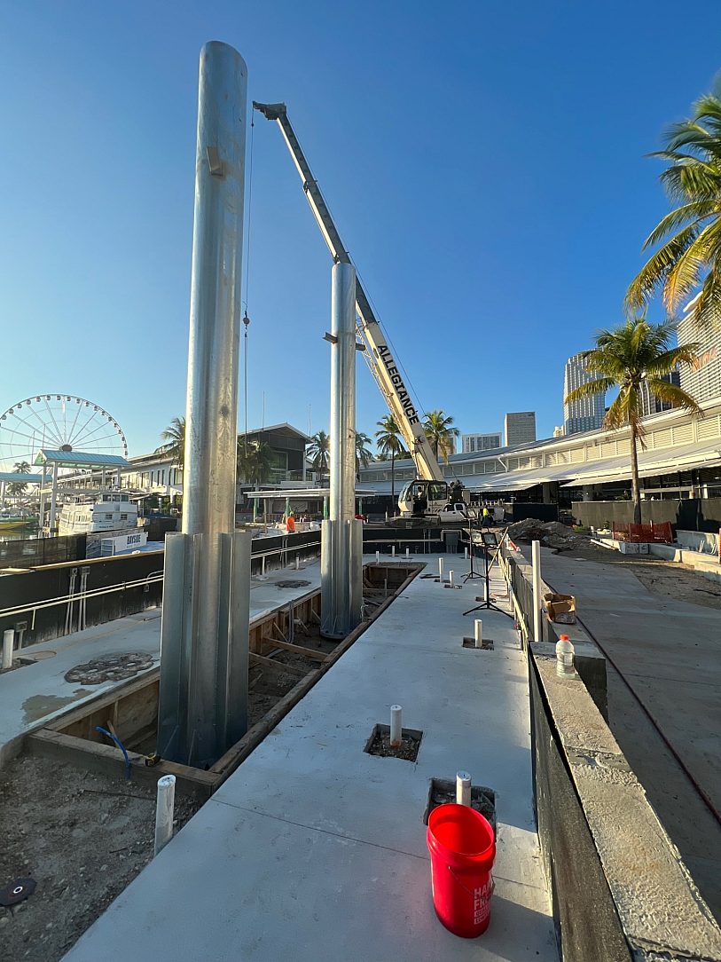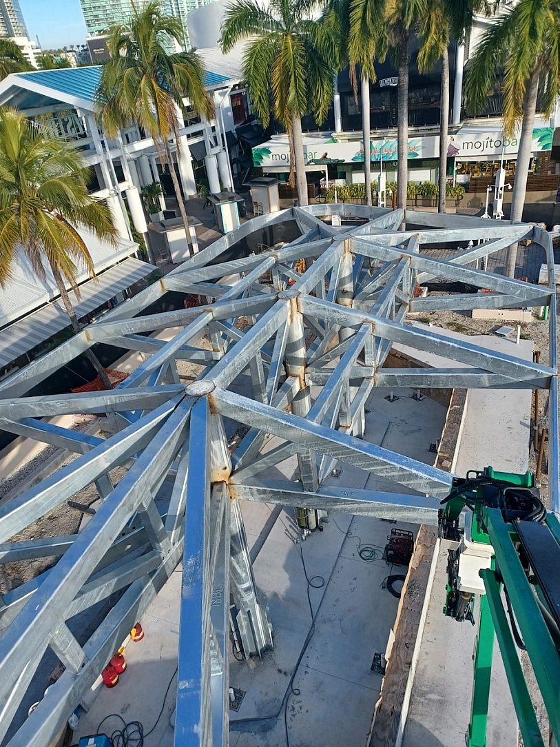 Amid the bustling energy of Miami’s downtown, where the glimmering waters of Biscayne Bay meets the modern cityscape, a testament to engineering excellence emerged – the GB Welding Canopy. This visionary project aimed not only to be near Miami’s waterfront but also to stand strong against the corrosive saltwater air and hurricane force winds.