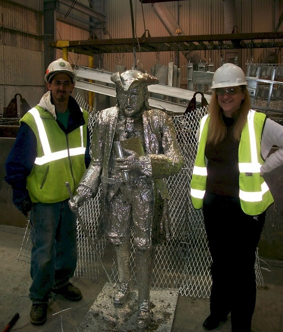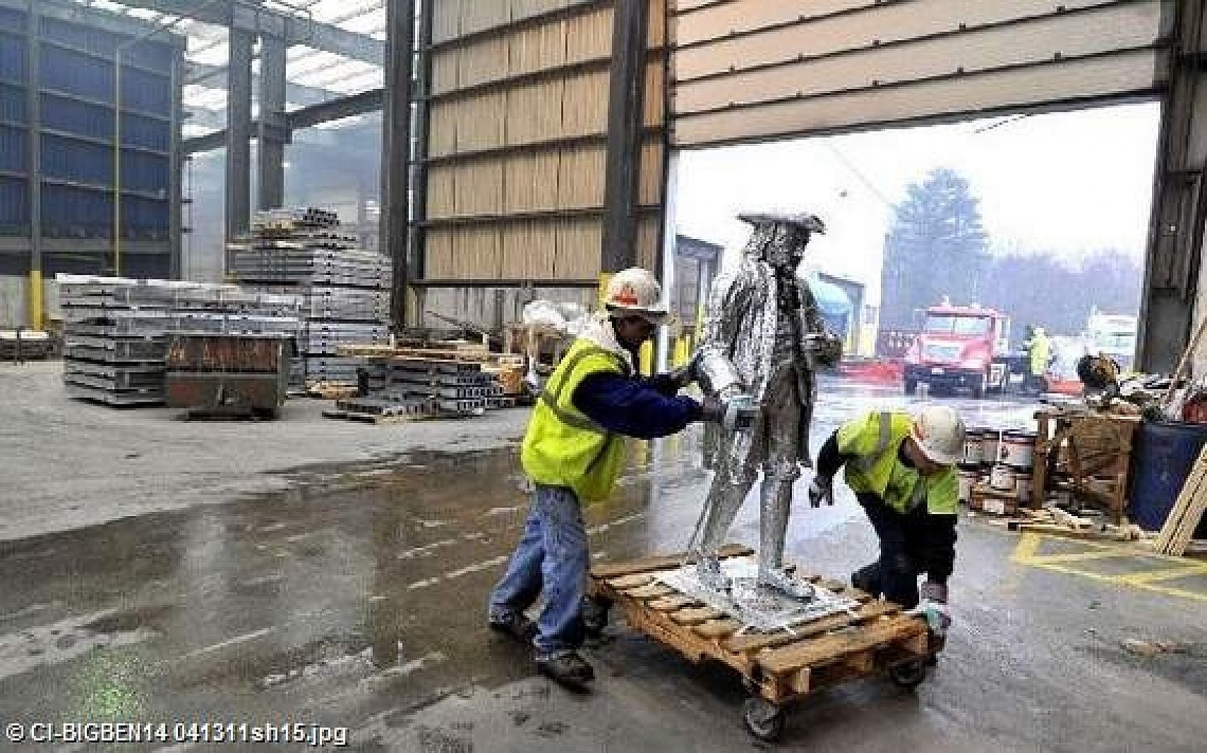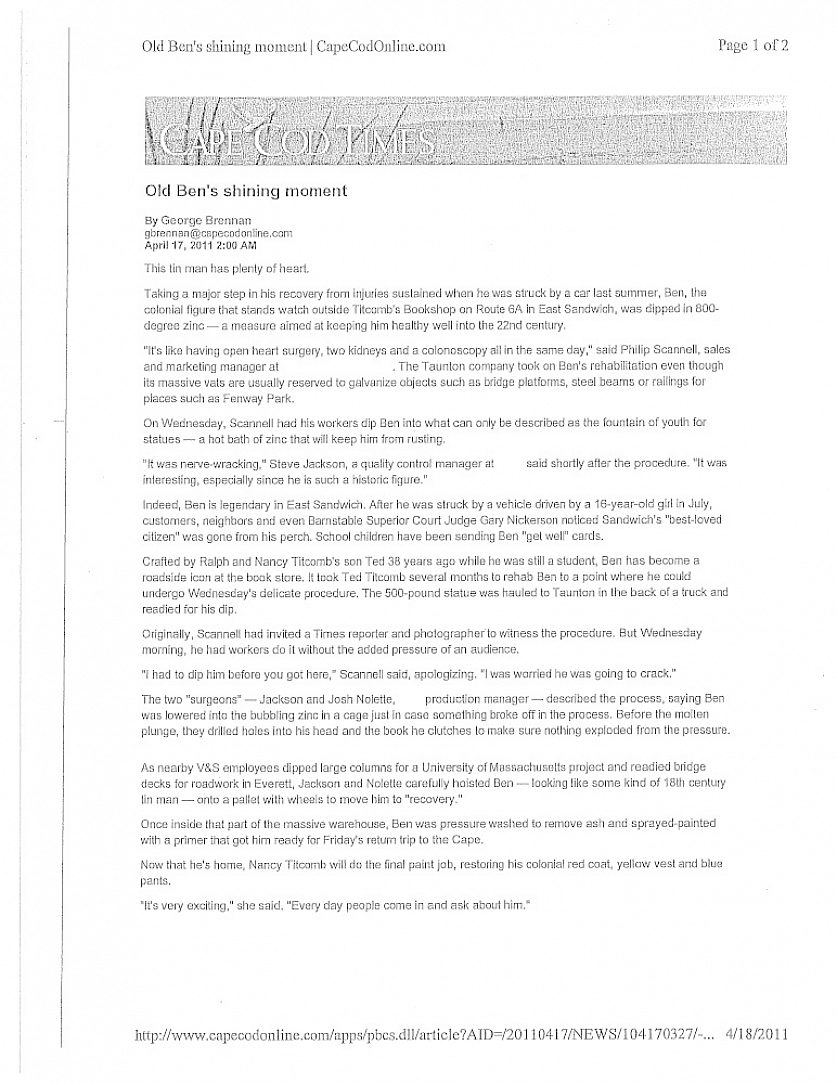 The galvanizer visited this area often, took note of the statue and the owner was offered to have it put back together, galvanized and painted. The owner and entire community was delighted to see a new and improved Ben Franklin statue sitting outside of the book store once again.