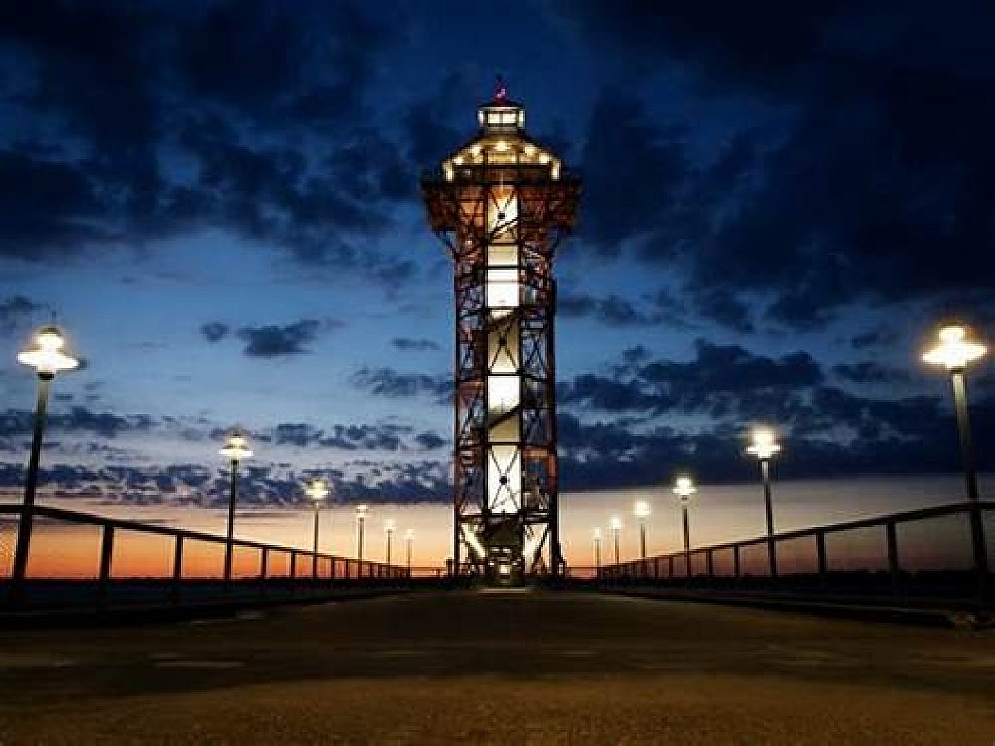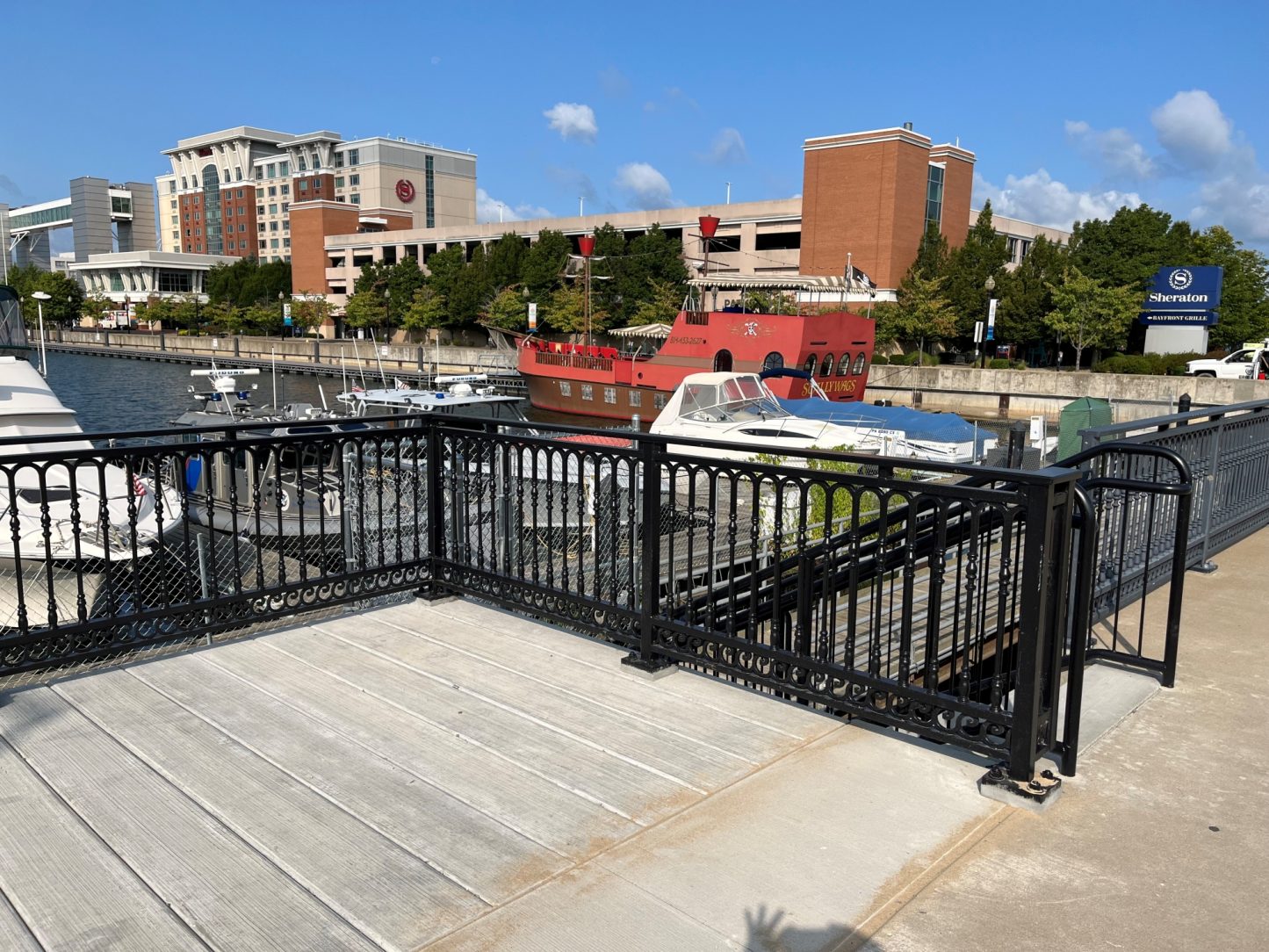 All of the handrail on the piers surrounding the tower and the bayfront.