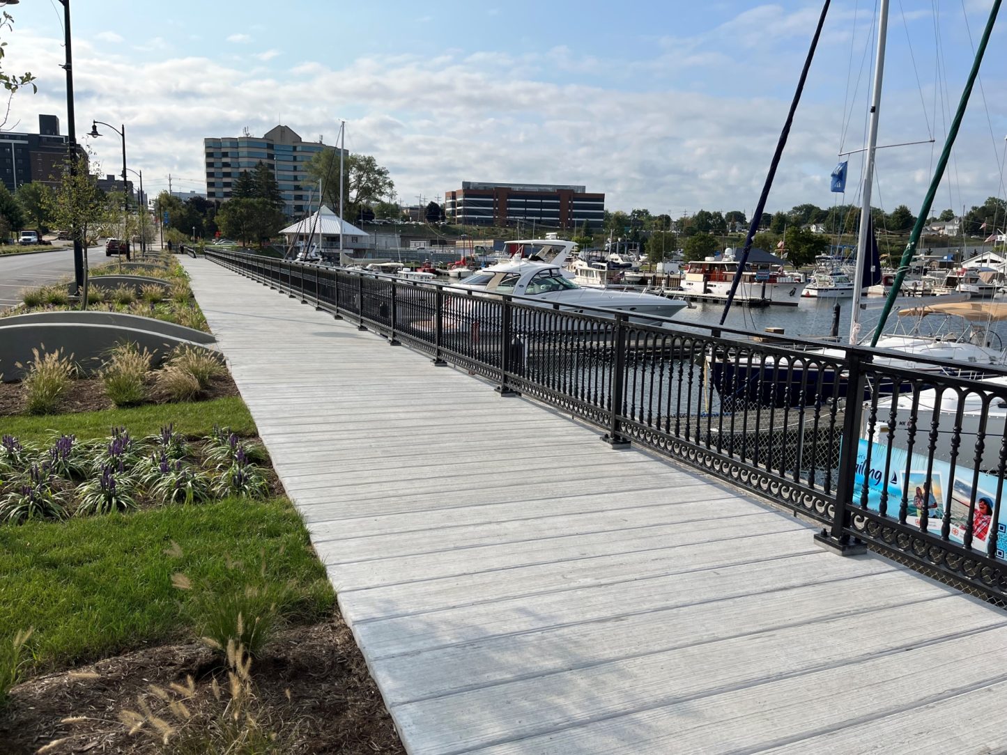 To counteract the challenging corrosive effects of the great lake shore, a strategic decision was made to employ a duplex system. The chosen approach involved galvanizing followed by painting the handrails, ensuring maximum protection against corrosion. Duplex systems have demonstrated the ability to extend the life cycle of coatings up to 2.3 times the average lifespan.
