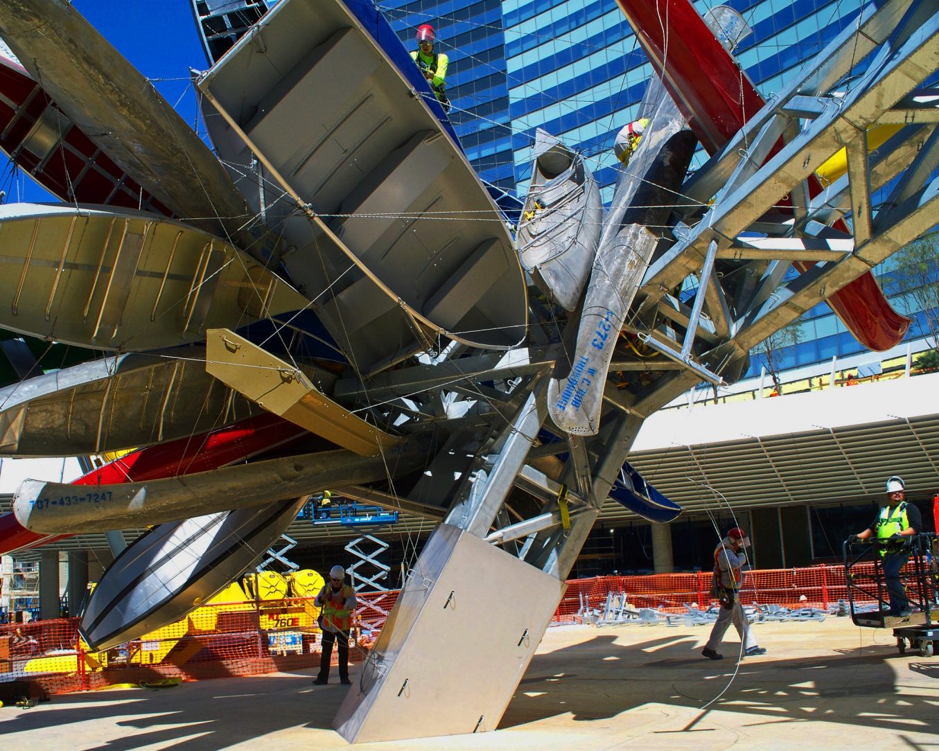 Located in the new City Center development on the Las Vegas strip, this monumental 15.2 ton hot-dip galvanized structure draws attention from many passersby. The artist, world renowned Nancy Rubins, worked closely with the galvanizer, fabricator, and installation crew to make sure the intricate piece was finished and installed properly.