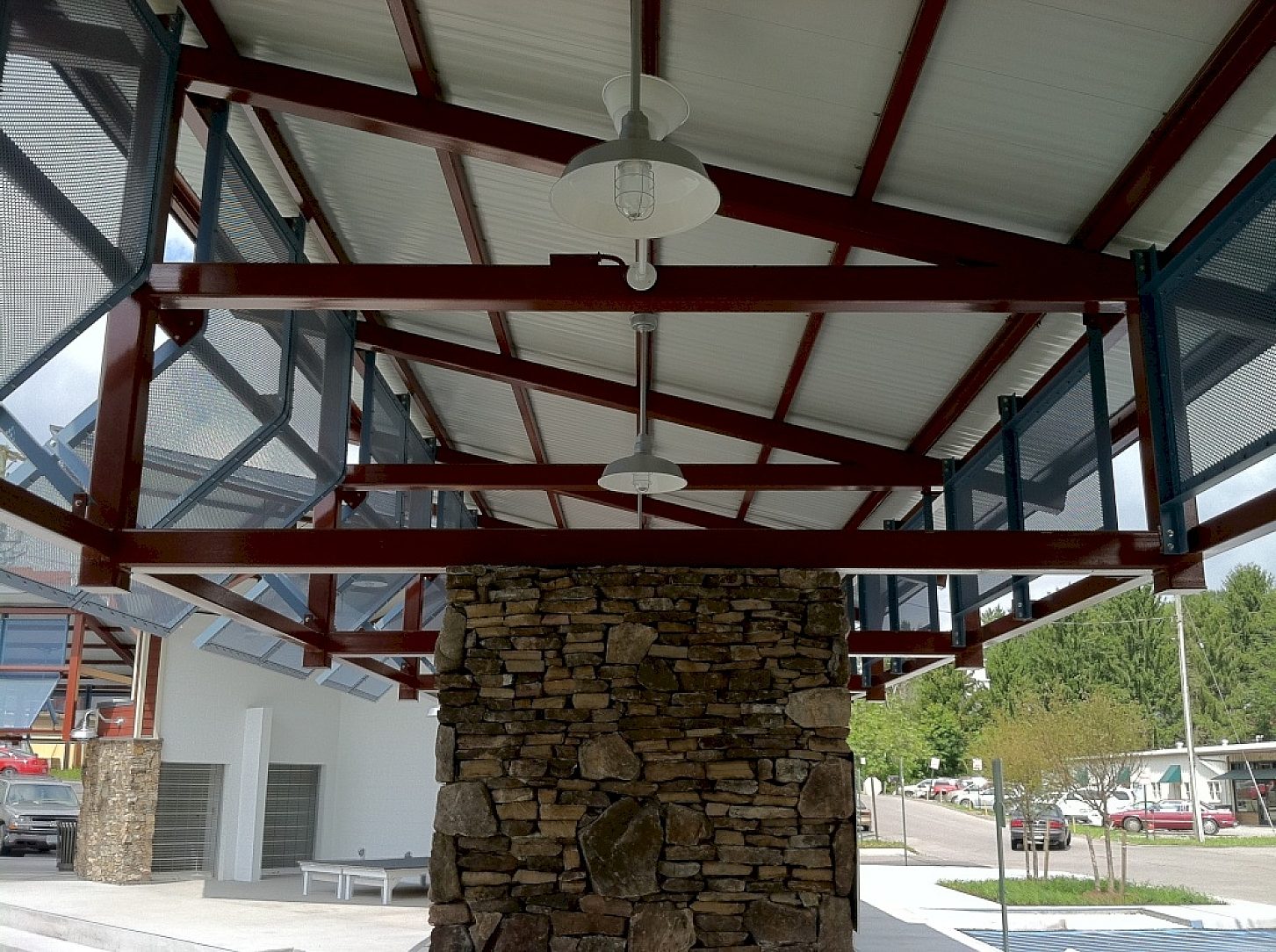 The town of Wise, Virginia is nestled in the high ridges of the Appalachian Mountains where the environment can provide extremes of heat, cold, rain and snow. The new outdoor Community Center and Open Market was built to be the focal point of the town. Coating durability was necessary to preserve the beauty of the structure.