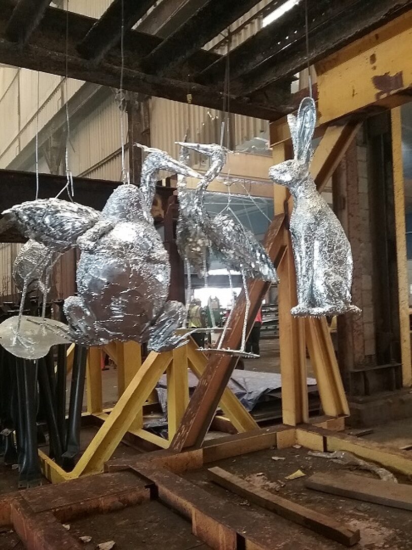 Nationally recognized artist, Bill Allen, is known for his unique outdoor metal sculptures. Often featuring animals and insects; they are crafted of welded steel, and hot-dip galvanized for corrosion resistance. They are then coated with liquid copper, and sometimes painted for indoor applications. When asked why he chose hot-dip galvanizing, he simply stated he knew it would provide the longest life cycle for his creations, that are often placed outdoors and exposed to many elements in Michigan. He was looking for durability, low life cycle cost and low maintenance, without sacrificing the look of the pieces.