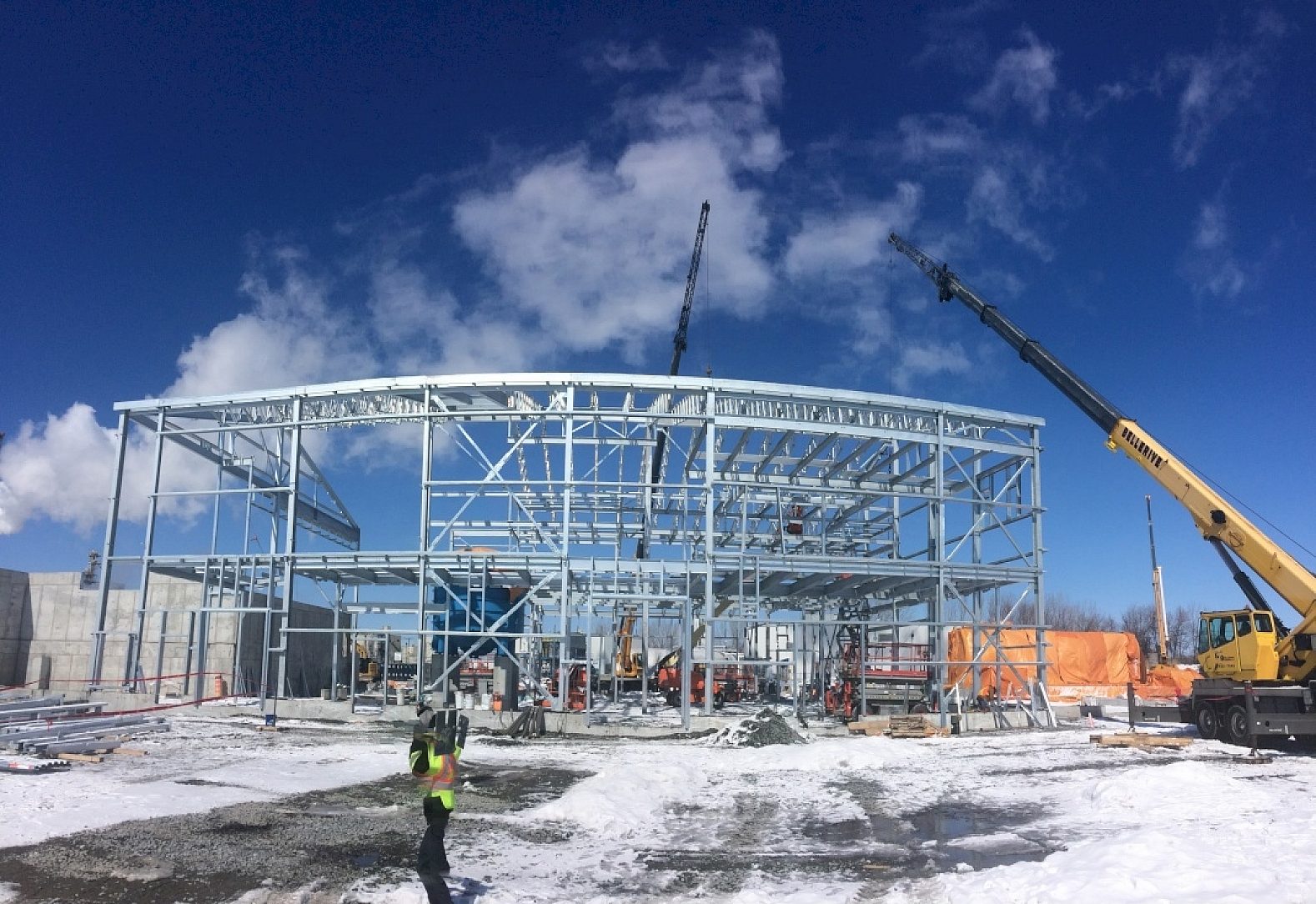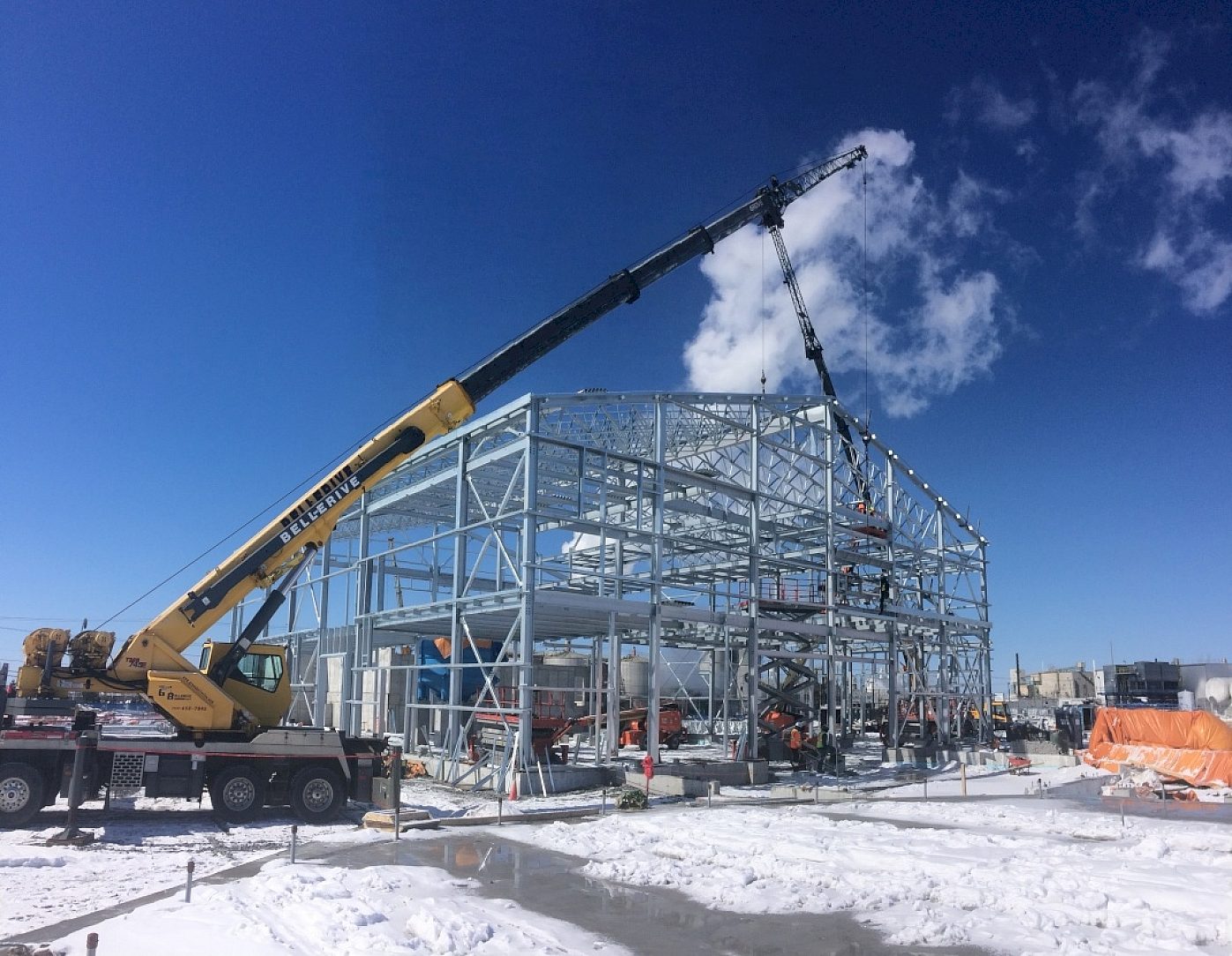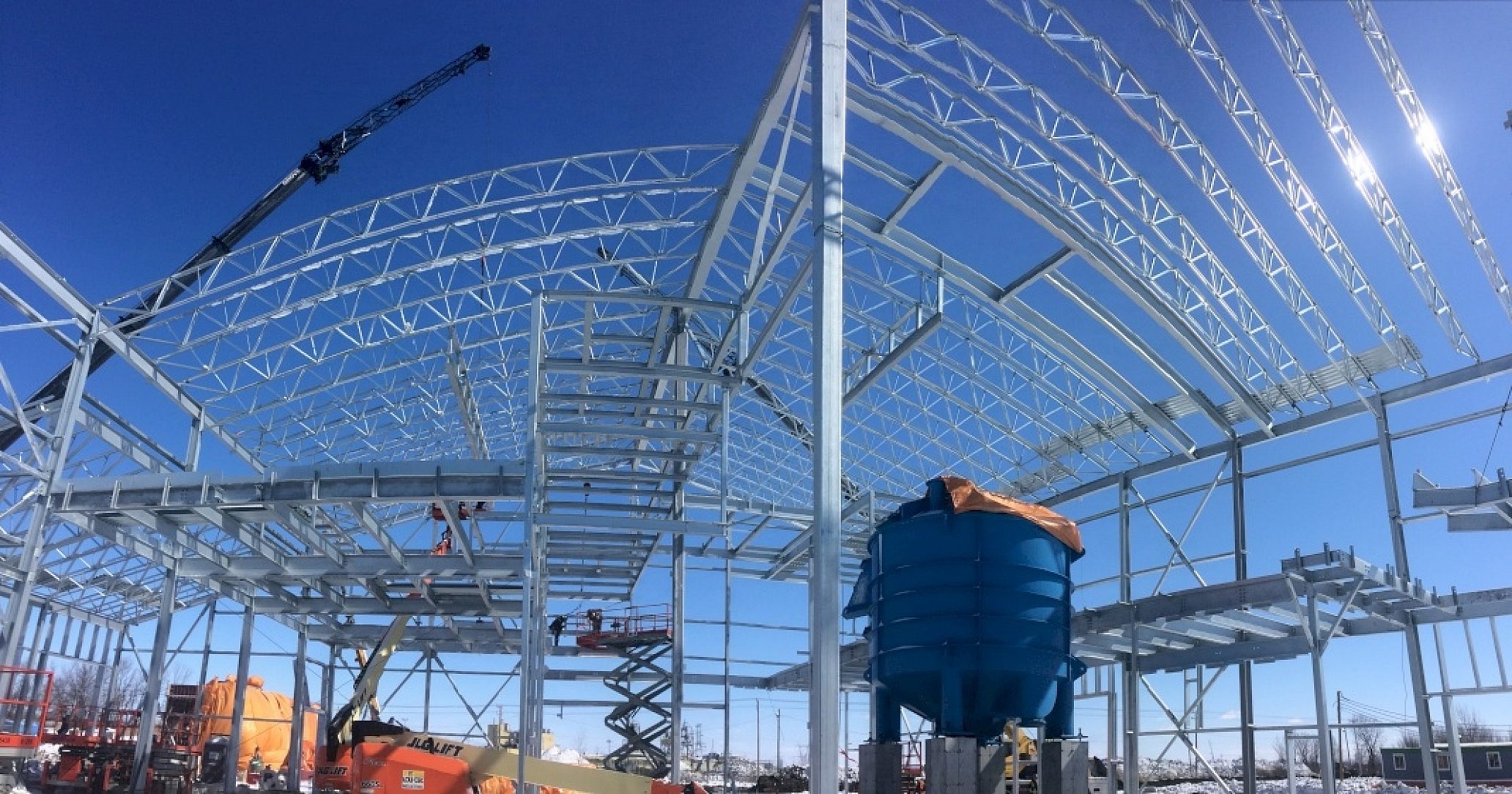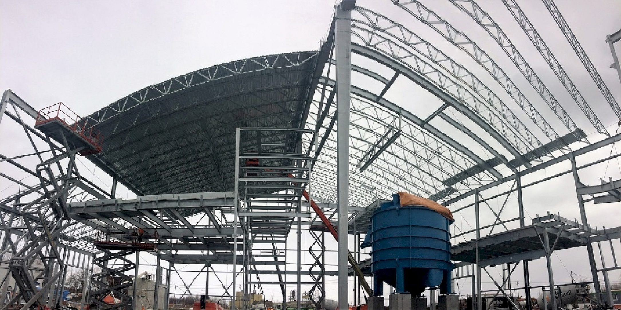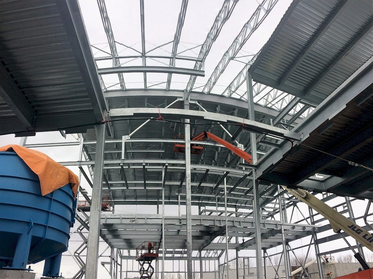 First was the evident life cycle cost benefits from galvanizing especially in the highly humid conditions generated by the biogas process. Secondly, the fabricator argued that substantial savings would be realized in building erection with extremely rugged galvanizing. Painted components are often scratched, and countless man-hours and project delays are required to constantly repair almost every component as it is manipulated. This was especially important given that the timing of the project would result in winter steel erection, putting the already questionable quality of on-site touch-ups in even greater doubt when the freezing temperatures and precipitation of Canadian winters are considered.