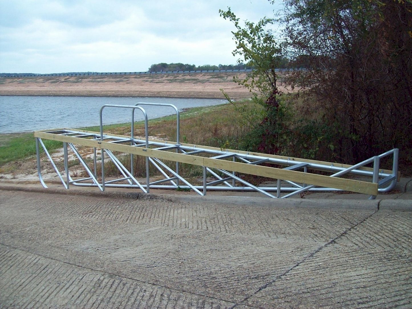 Hot-dip galvanizing will allow the patrons of Lake Bob Sandlin to enjoy the convenience of a boat ramp pier with superior longevity and will provide Texas Parks & Wildlife with a long-lasting product that requires virtually zero maintenance. HDG performs very well in fresh water, and adds durability by providing a surface actually harder than the base steel. Hot-dip galvanizing provides protection of the structure from environmental elements and the perpetual abuse caused by movement along the concrete channel. Other coatings such as paint or powder-coating offer merely barrier protection and would fail to adequately protect the pier from corrosion.