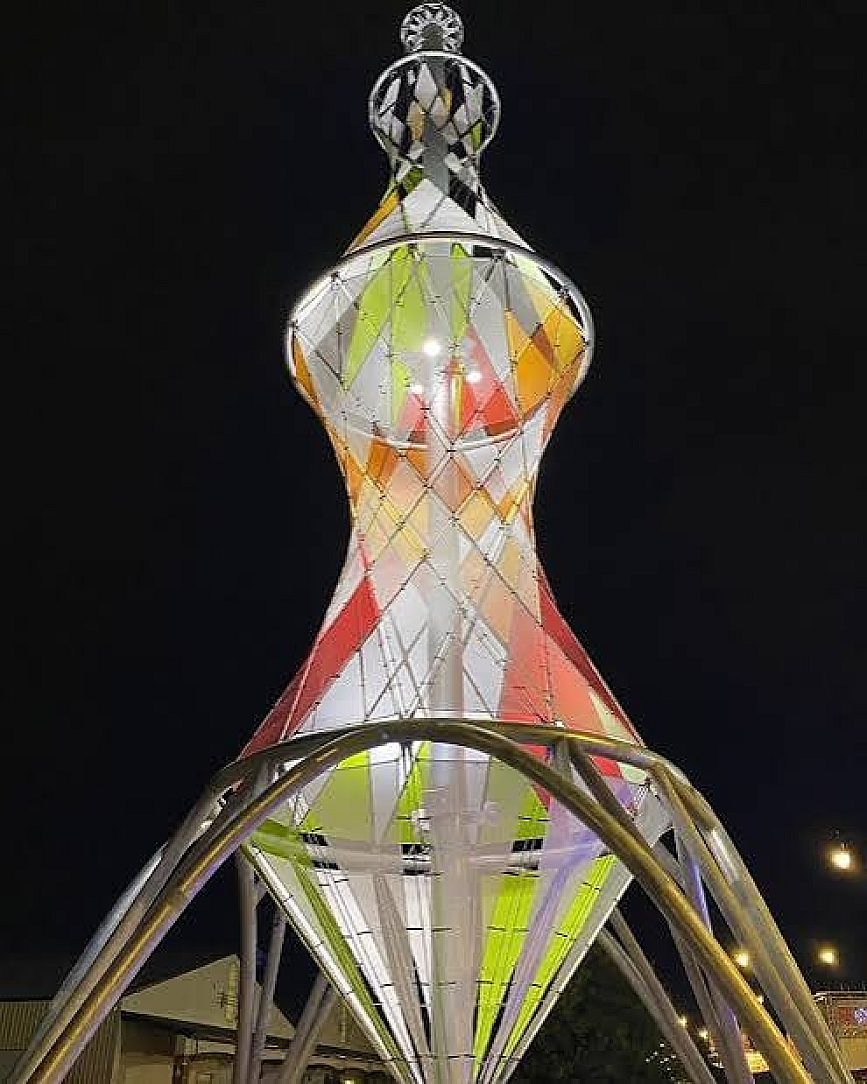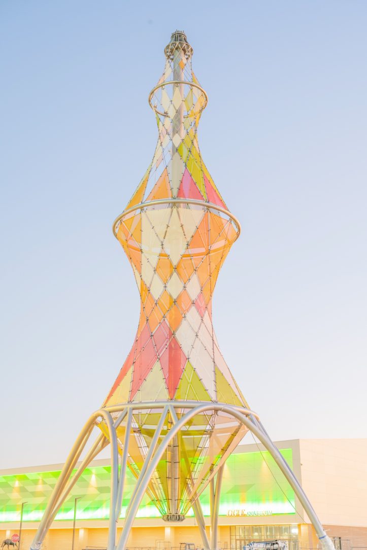 Visually inspired by the playful mid-century sculptures once found at Fair Park, the tower connects past and present, honoring cherished memories while looking toward the future. Made with innovative materials and design techniques, the structure is both lightweight and striking in scale. By day, Bolt Tower catches the eye with its bold form and colorful presence. By night, it comes alive with glowing light and shifting colors, creating a welcoming beacon for visitors.
