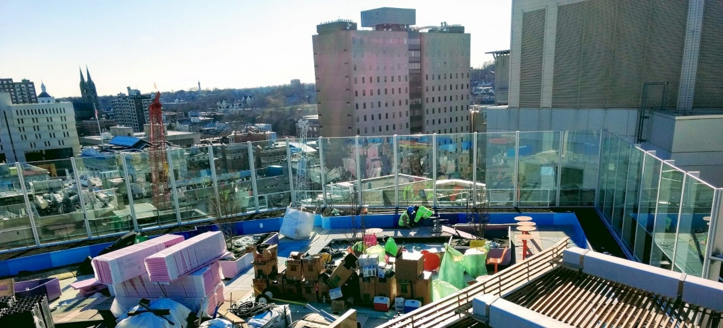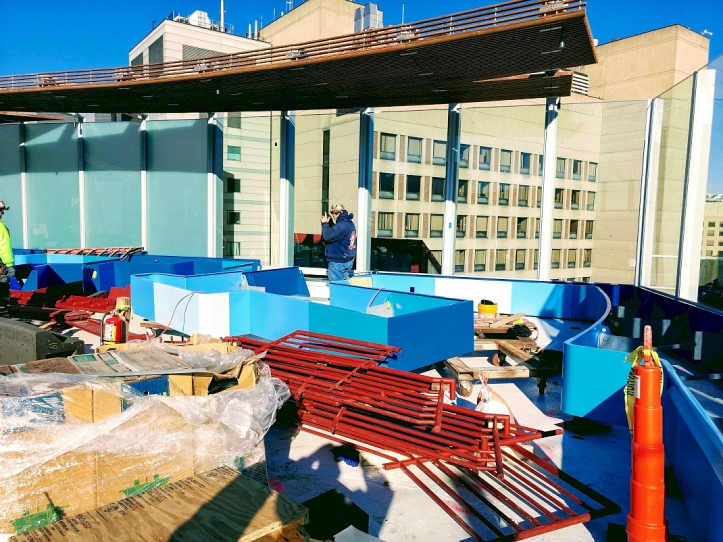The $1 Billion, 11-story Clinical Care Tower - the largest in the history of Boston Children's Hospital - addresses critical capacity needs and creates a new cardiac center of excellence for the country's top-ranked pediatric hospital. The building on the Longwood Medical Area campus replaces an existing park and, in order to gain approval for the new construction, the hospital had to commit to creating a like amount of green space. Through innovative design and engineering, the architectural team created a rooftop garden that provides patients, families and staff with a panoramic view over the city. Since the design included approximately 50 ton of steel product, a duplex system of hot dip galvanizing and paint was specified to provide long-term corrosion protection and maintenance-free aesthetics.
