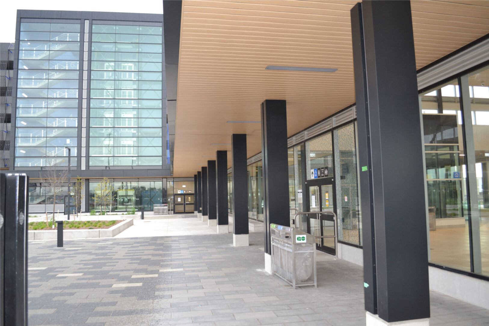Bramalea GO Station is a bus and railway station that connects commuters to the Toronto downtown core at Union Station in approximately 30 minutes. The redevelopment plan for the station targeted improving the customer experience and overall passenger safety including additional parking, updated amenities, and enhanced accessibility. One of the important new features is a continuous, overhead steel canopy. On the surface, the value of an overhead canopy is simple – shielding passengers from inclement weather as they wait for their ride. This shelter is crucial in the continental climate of Ontario that can be rainy in the spring and snowy throughout winter. What isn’t as apparent is how the canopy protects the newly upgraded electrical and mechanical equipment including lighting, electrical systems, PA system equipment and electronic display boards.