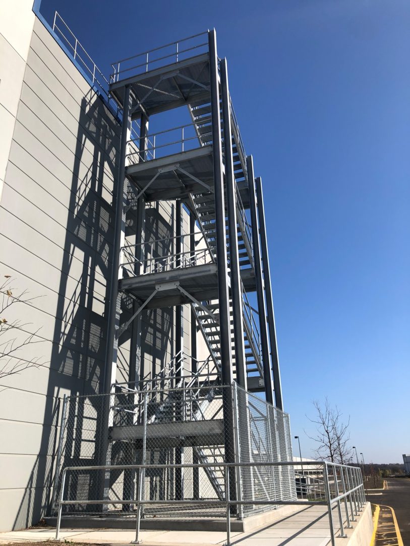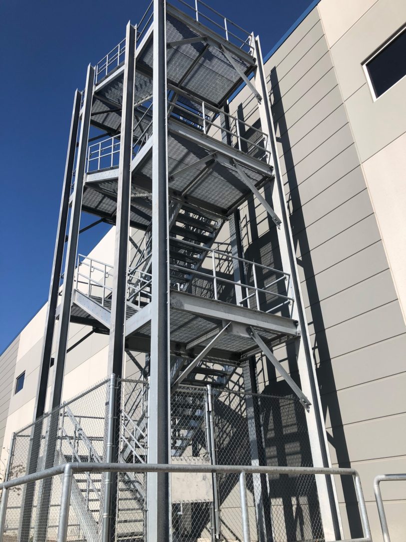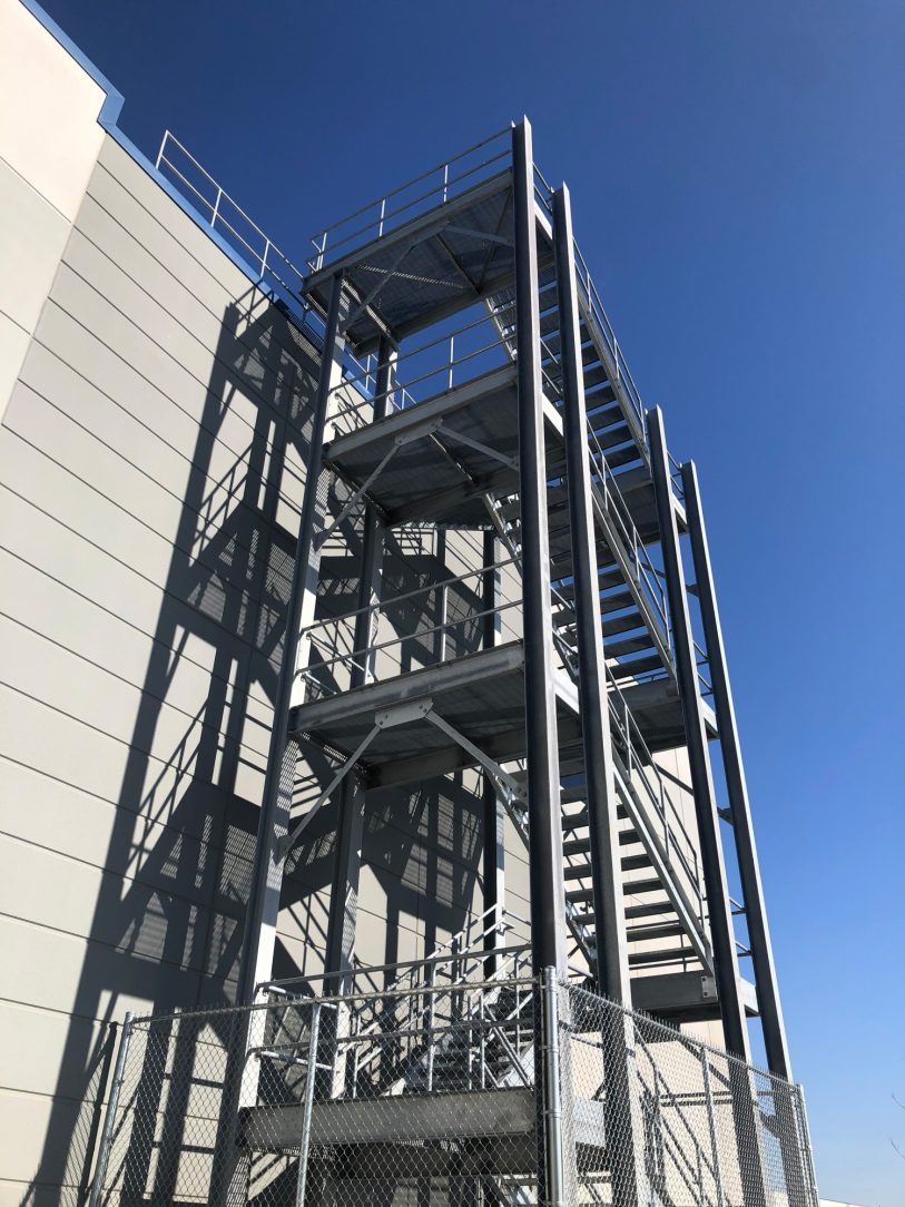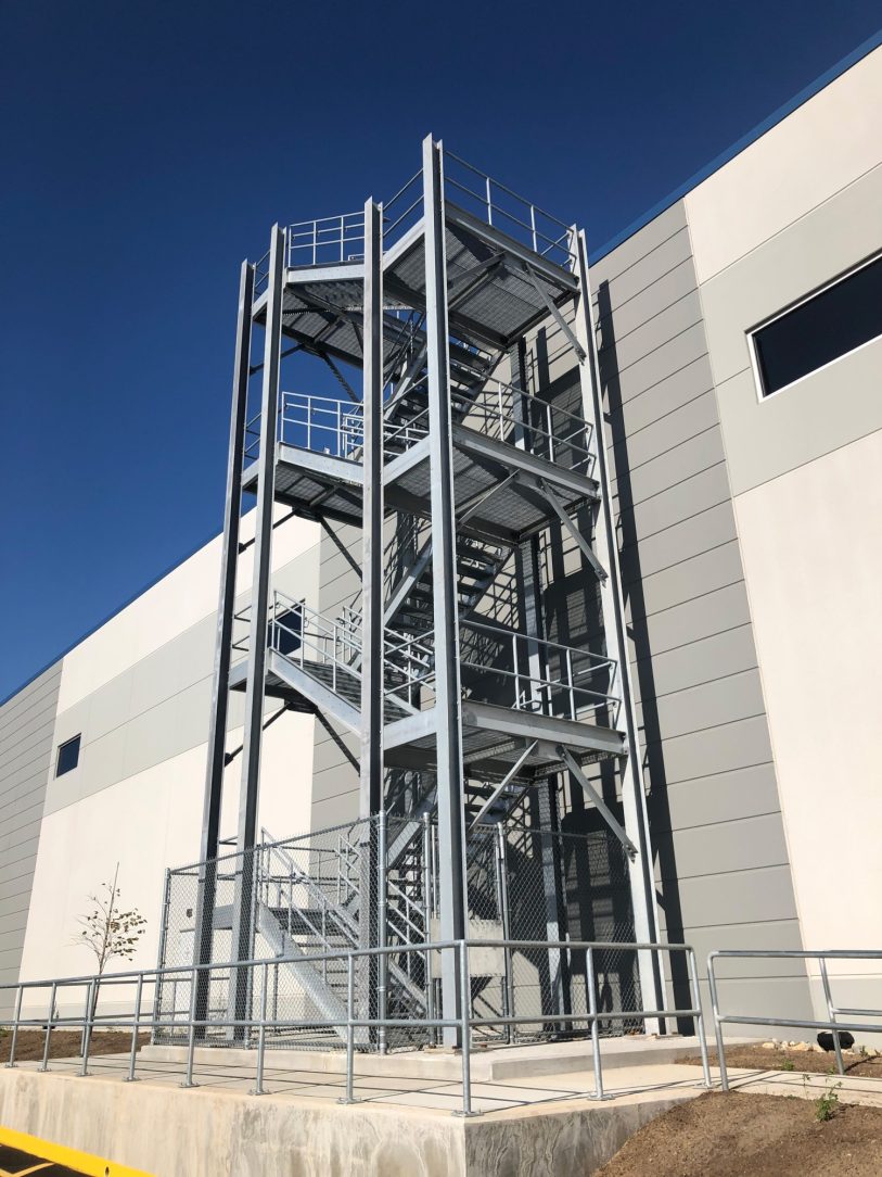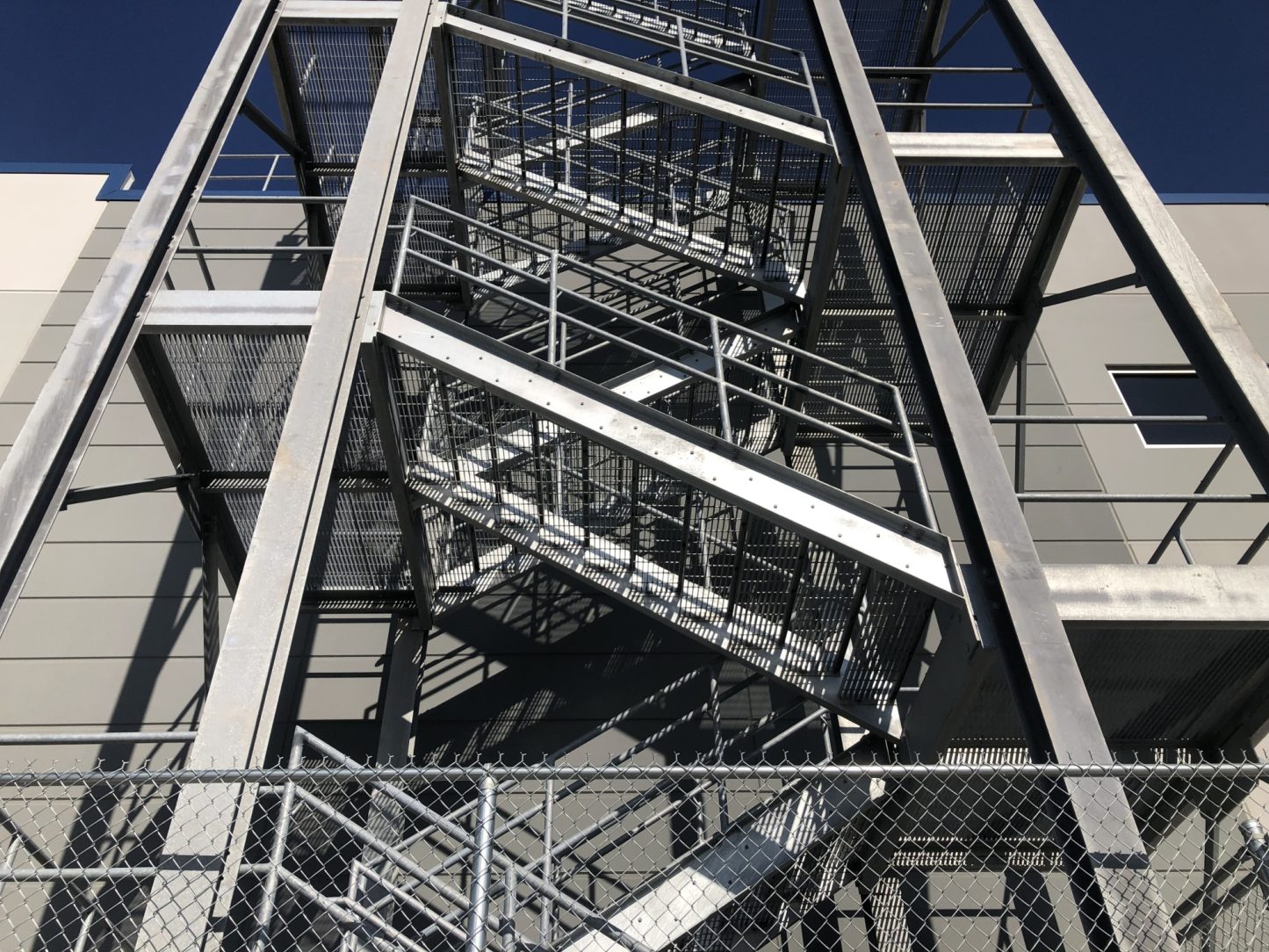 The rooftop access staircase is constructed from 25 tons of hot-dip galvanized steel beam columns, staircases and handrails and assembled at the galvanizer. The proximity of the galvanizer to the jobsite made it possible to send large sections directly to the jobsite for a seamless installation for the General Contractor, Alloy Welding.