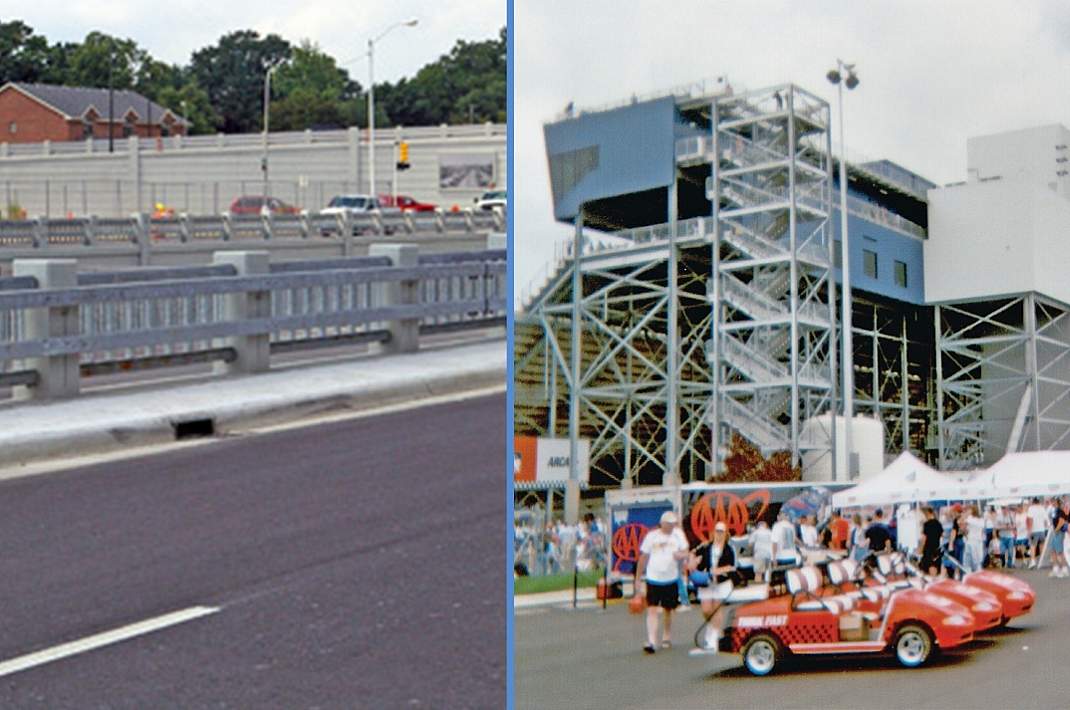 All exposed steel was hot-dipped galvanized, blending Colossus into the surrounding galvanized steel of the speedway.