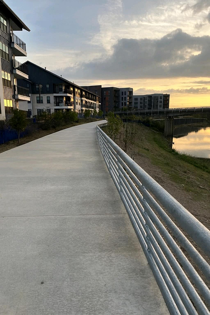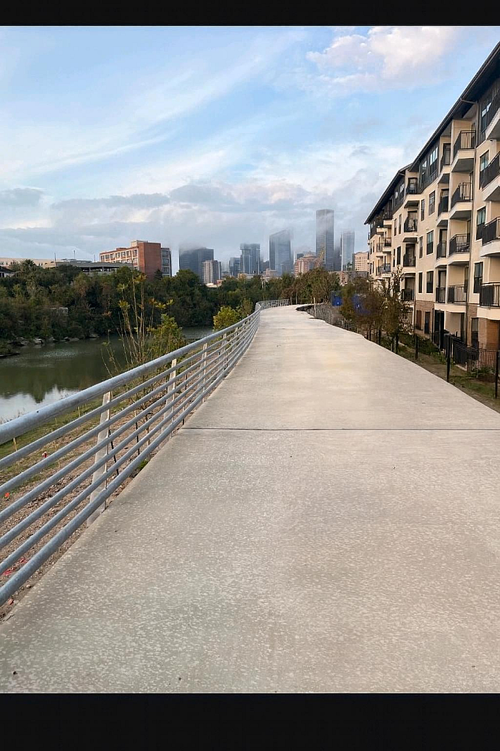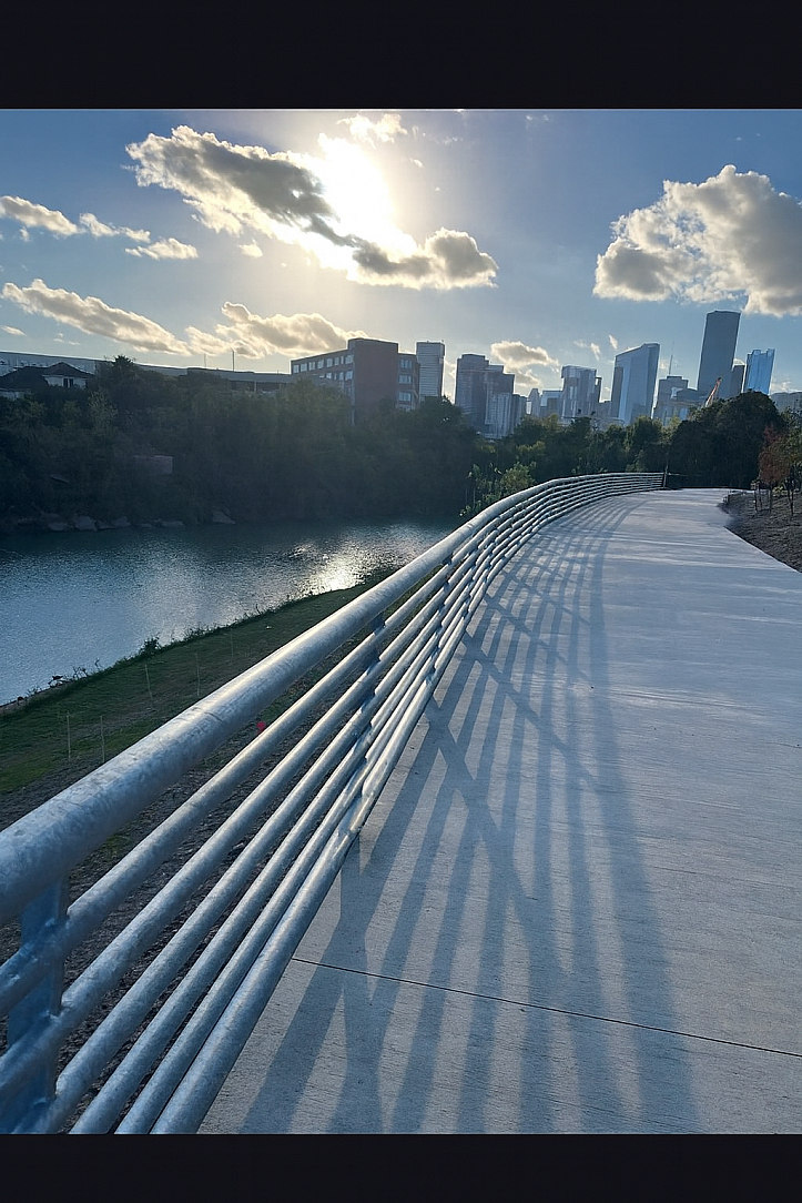 In 2025, the Buffalo Bayou North Bank Trail improvement project began to transform the community and provide long-term infrastructure durability. Once an overlooked industrial edge of the city, the area began a rapid revitalization as new residents and businesses flooded the area. To meet the needs of the growing community, a unique, elevated deck was added to the trail. This type of trail design is vastly different than the flatland trails that tend to be more common throughout Houston. The North Bank Trail would now be an inviting space for runners, cyclists, and families to enjoy the beauty of the once desolate area.