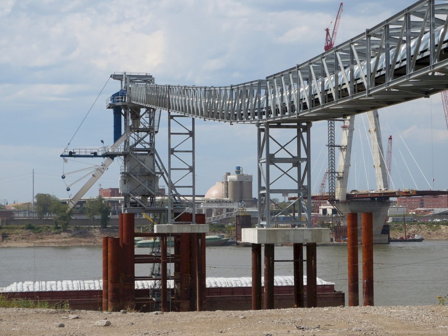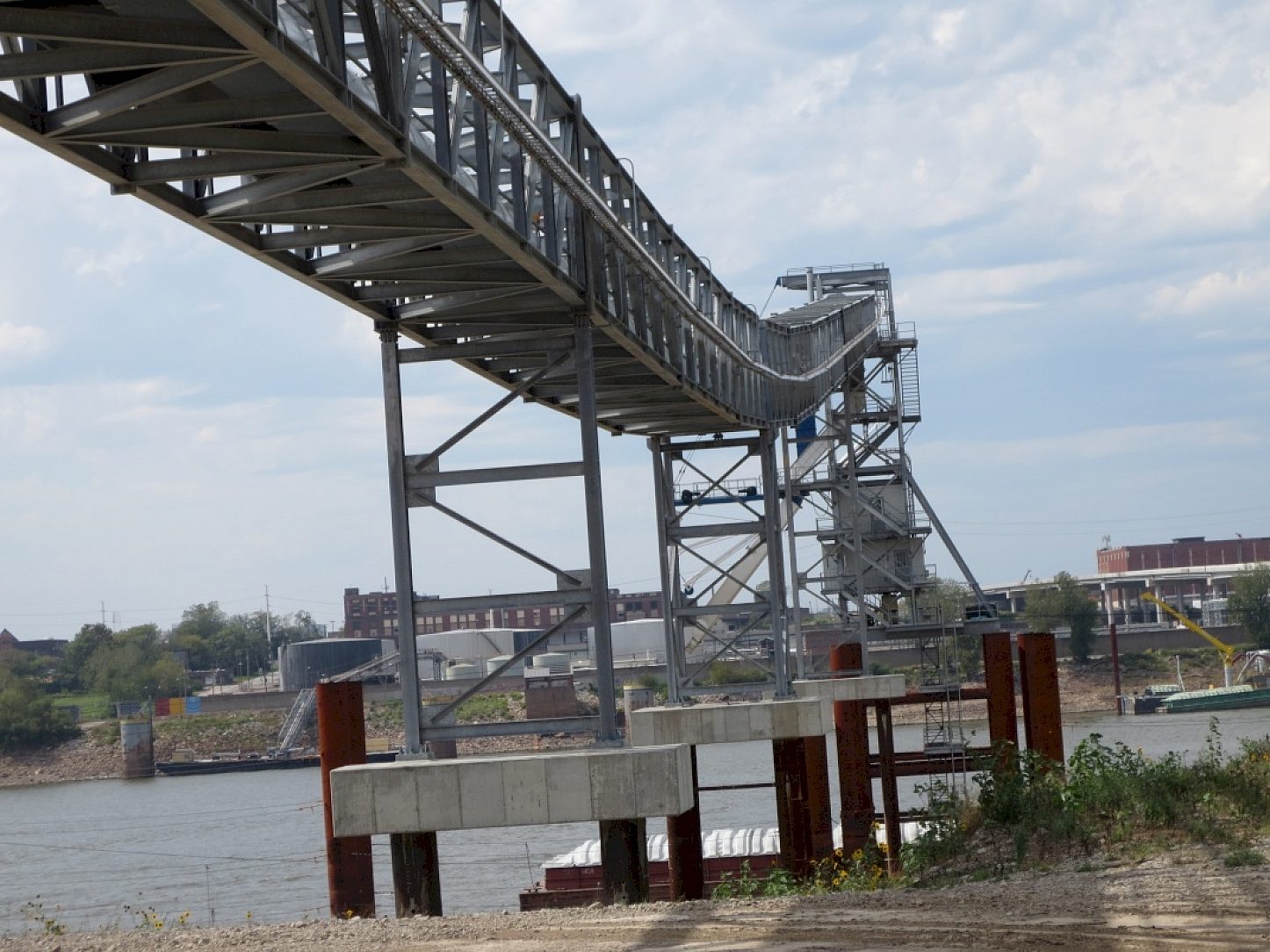 For Bunge, hot-dip galvanizing has proven to be the best corrosion protection system for its massive grain handling operations. With a location near the waters of the Mississippi River, this barge loader is exposed to moisture and extreme weather conditions. The tried and true benefits of HDG made the decision easy. Maintenance of such a complex and large structure would be a nightmare if regular repainting was necessary. "Galvanize it and forget it" was the theme for maintenance of this large project.