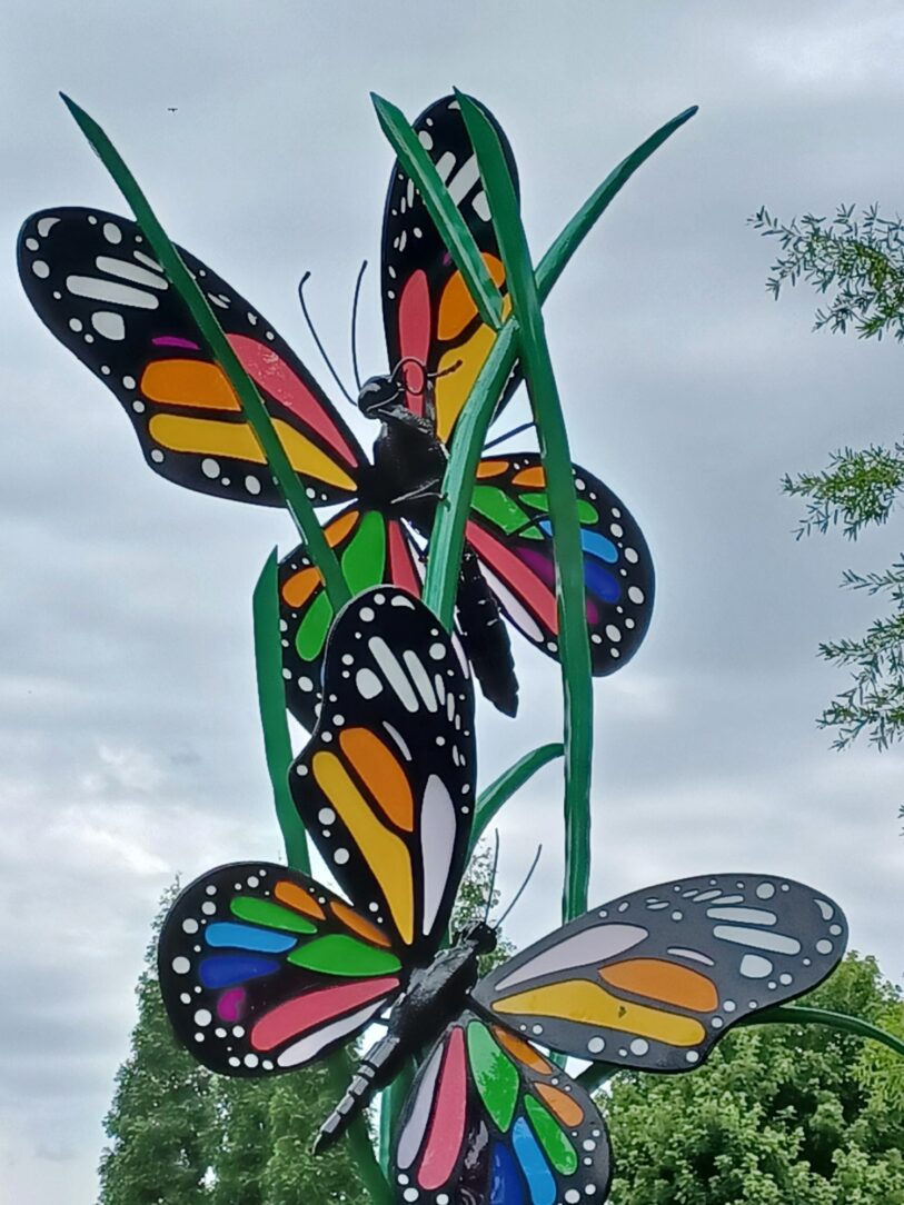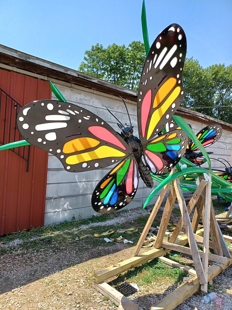 The complex design of each butterfly with proper venting/draining considerations took over 40 hours of fabrication to create. The design worked great for hot-dip galvanizing and after a light acid etching by the artist it was ready for the colorful duplex coating. Thanks to the forward-thinking efforts by those involved, the people of Southern Kentucky will enjoy the healing power of art & nature on the Path of Hope & Healing for generations to come.