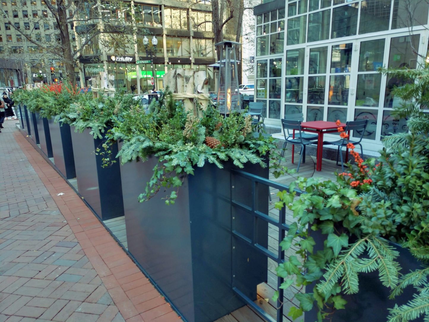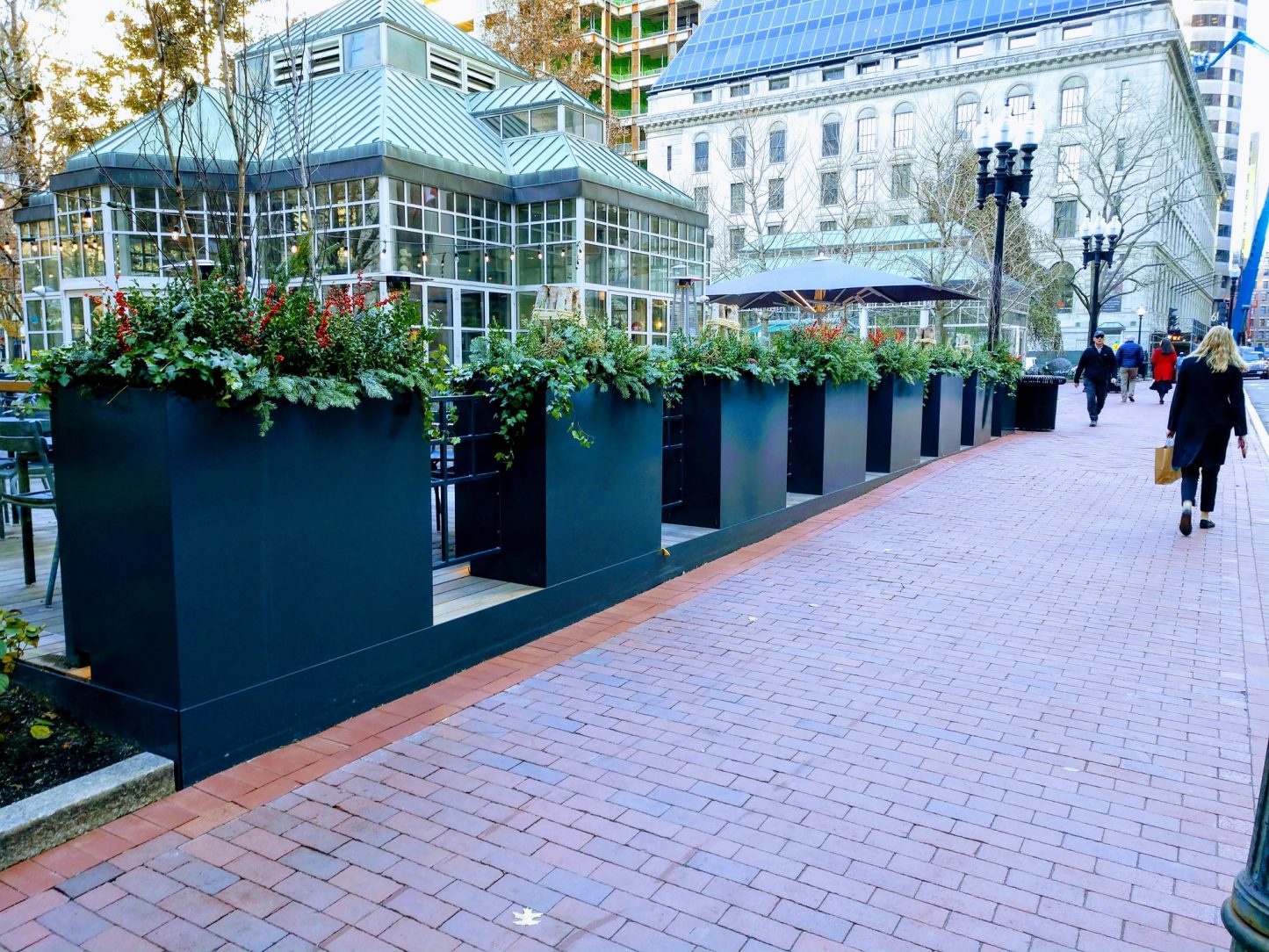 In 2019, the owners of the café were looking to expand. They wanted to maintain the Park’s integrity and create a boundary between the roadway and the café. To achieve their goals, a new terrace was built. A series of steel planters were designed to complement the landscape, and a glass guard rail provided the necessary separation from the surrounding park and streets.