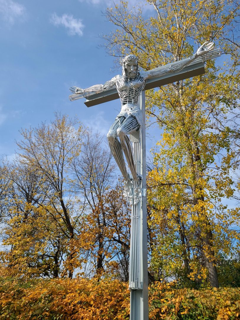 Erected in the small St-Redempteur cemetery in Gatineau across the Ottawa River from the capital of Canada, this crucifix will remind those reflecting on lost loved ones their shared faith derives from not only God but also his very human son.