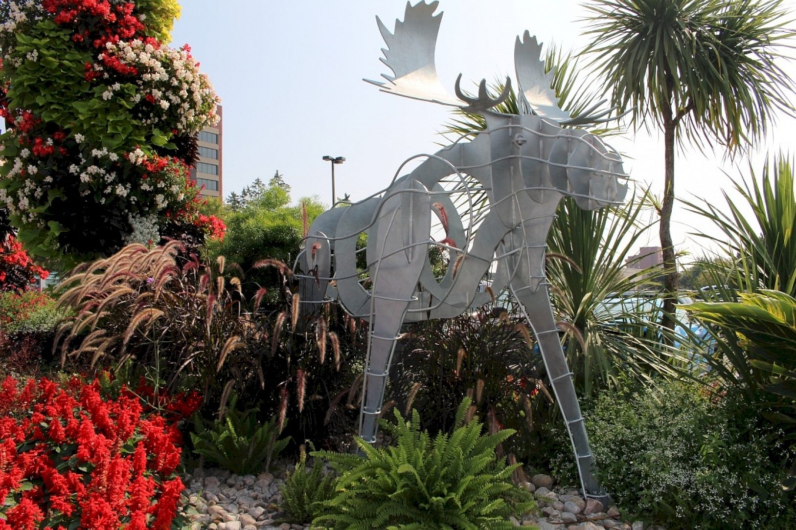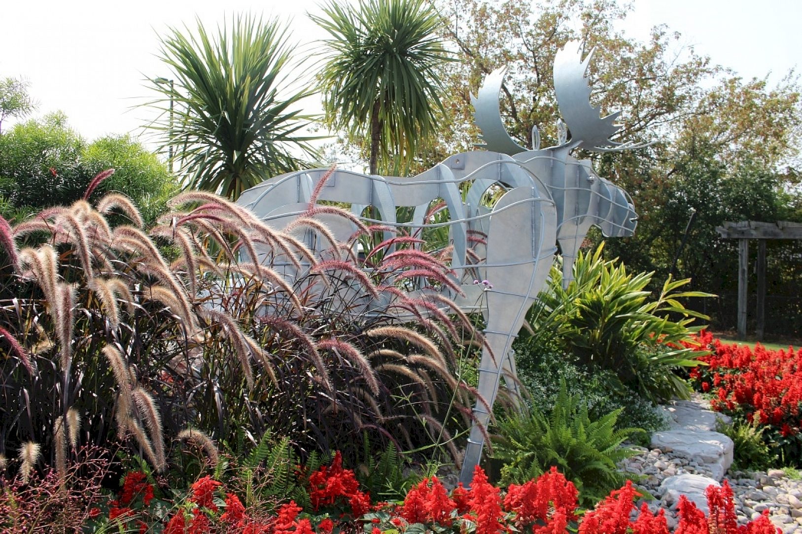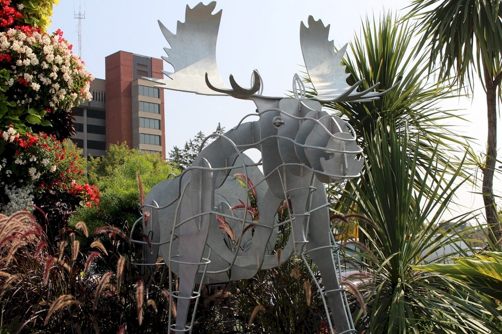 The city of Oshawa set out to create an incredible full size moose chia pet. The gardener planned to wrap the frame in chicken wire and fill it full of seed bearing soil. The fabricator decided to galvanize the moose because it was supposed to be in a continuously damp environment.