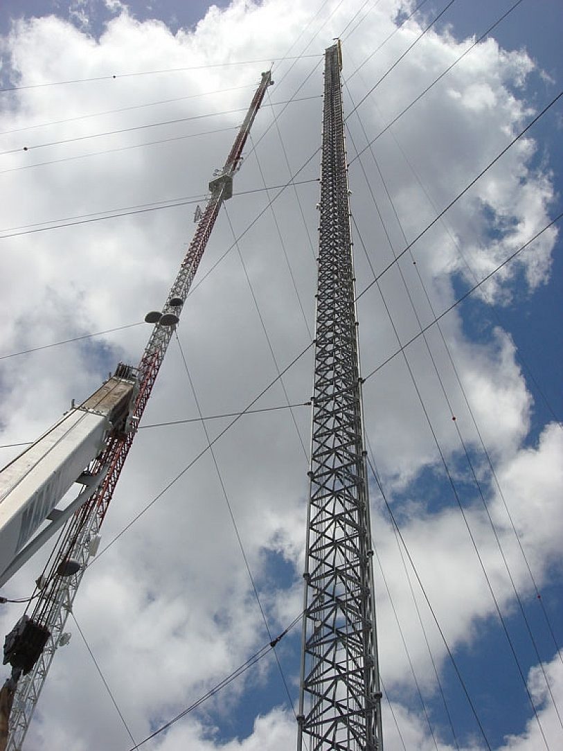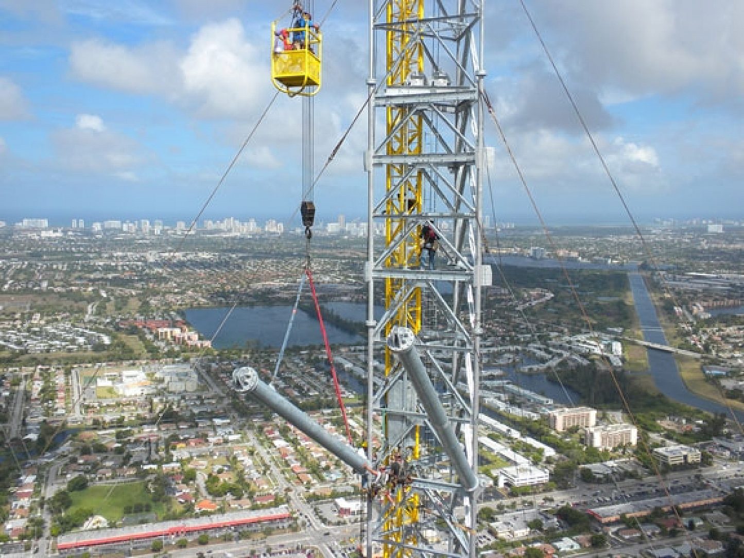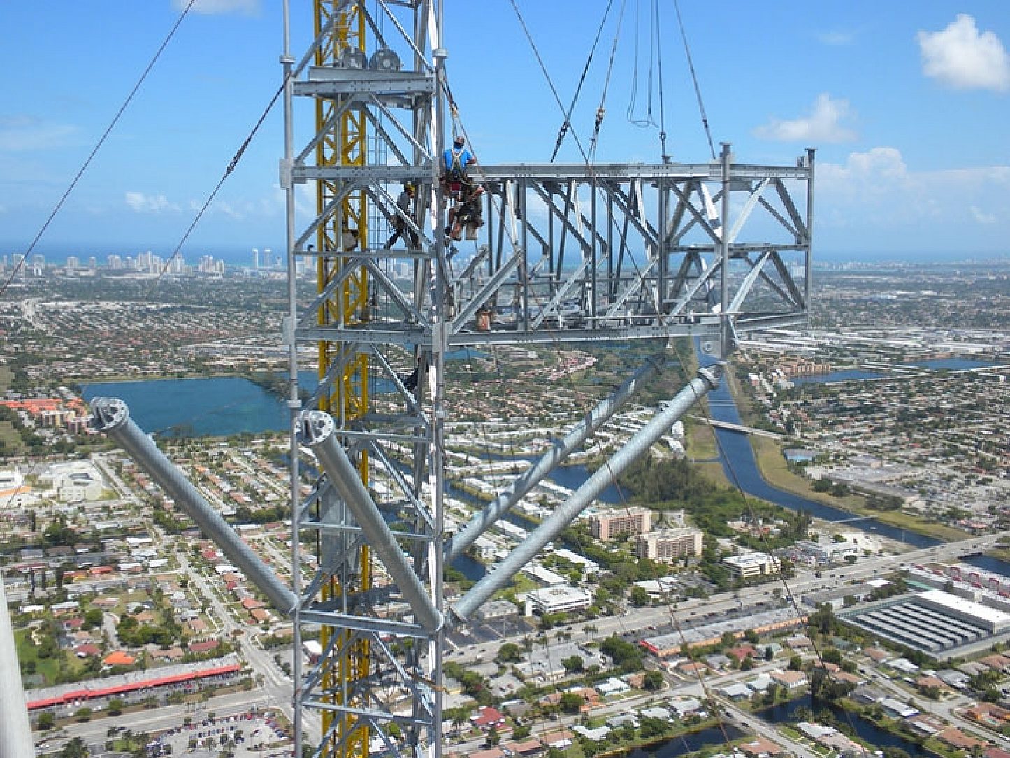 Piercing the cloudy heights of the Miami sky, the Candelabra communications tower is the tallest structure in the city at 1,042 feet. The structured tangle of more than 460 tons of tubular members, solid bar leg structures, fasteners, anchor bolts, and angel bracing was so impressive, it was featured in the October 2009 issue of Modern Steel Construction highlighting the challenging size and design of the project. A structure of this size had to slip-fit and all bolted holes needed to align and be clean and useful at the extreme height the material was to be assembled (more than 1,000 feet).