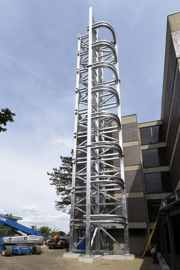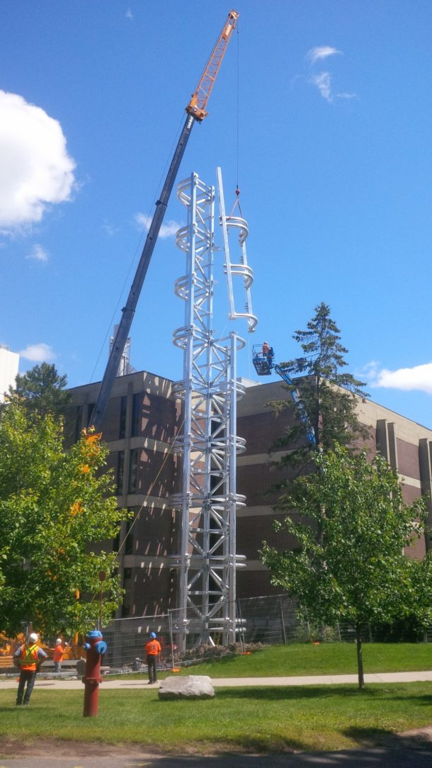 In plain view of tens of thousands of students, faculty and visitors every day a striking tower design was called for. It had to sturdy enough to support the large exhaust ducts coming from the Steacie Building and rigid enough that wind deflection wouldn’t tear apart those ducts. The high strength and low cost of structural steel was an ideal fit for the demanding physical specifications and Hot-Dip Galvanizing was a natural partner especially with harsh Canadian winter conditions and corrosive lab emissions flowing in those ducts.