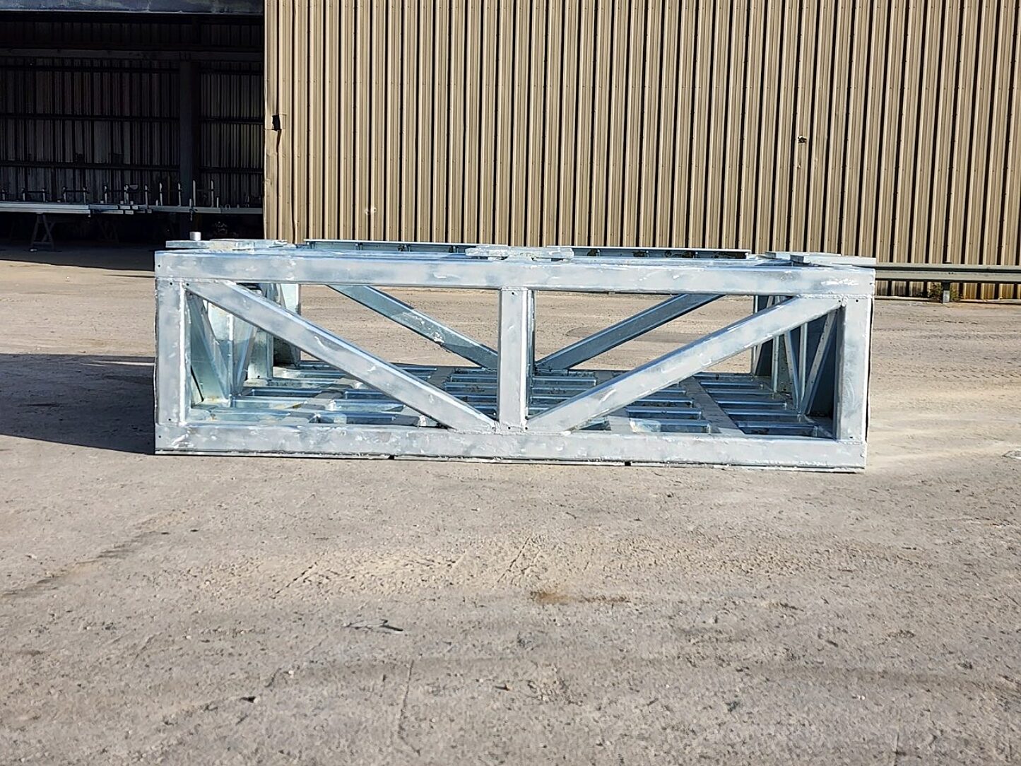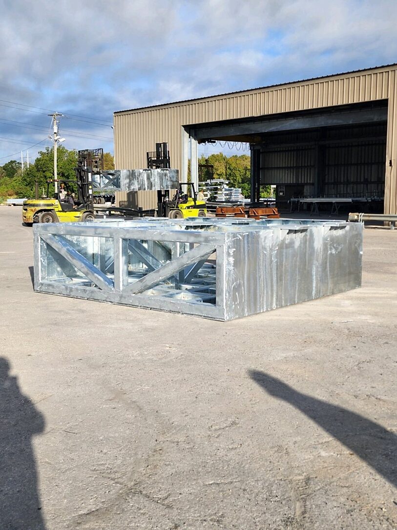 Once the design and engineering of the steel frames was complete, it was time to fabricate. When Port Miami chose Metro Steel USA to fabricate and build these frames, they had two things in mind: quality and service. The window of opportunity was small, which meant that the owner, fabricator, and galvanizer had to work together seamlessly to ensure that the frames were delivered on time to the port. Communication was key in order to guarantee success. There were (8) frames in all, and each frame was approximately 14’ x 12’ and weighing just over 15,000lbs each. The frames were fabricated with square tubing which meant that each piece of hollow tubing required vent & drain holes to be strategically located according to ASTM A385, therefore allowing air to escape during immersion into the zinc kettle, and the zinc to drain freely during extraction from the zinc kettle. Because of the overall dimensions of the frames, the galvanizer had to utilize a progressive dip technique which allowed them to hot-dip galvanize every square inch of the frames.