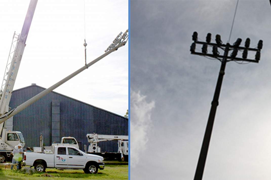 A private Catholic school in the Tulsa area was in need of some new infrastructure at their baseball field. The school had a limited budget to work with, but wanted to ensure the new installations blended seamlessly into the environment and didnt distract from the product on the field. A local galvanizer became aware of the schools need, and offered to donate the poles for the PA system and lighting free of charge. A total of 5 tons of poles were hot-dip galvanized and then painted for corrosion protection and visual appeal. The galvanized primer will ensure the poles do not burden the schools budget, while the paint appeases the parents and community by blending into the natural, scenic environment.