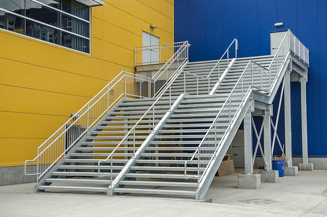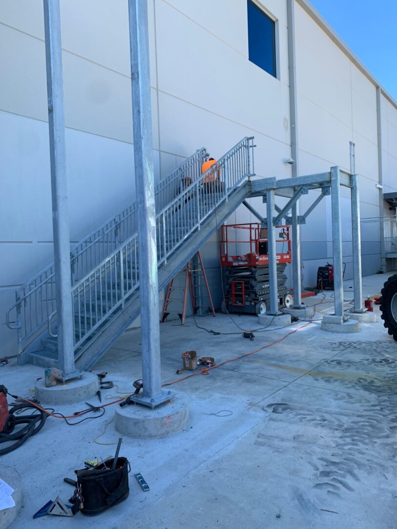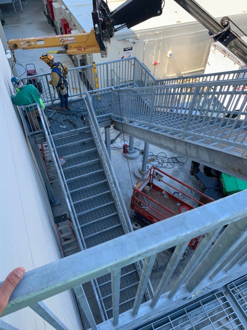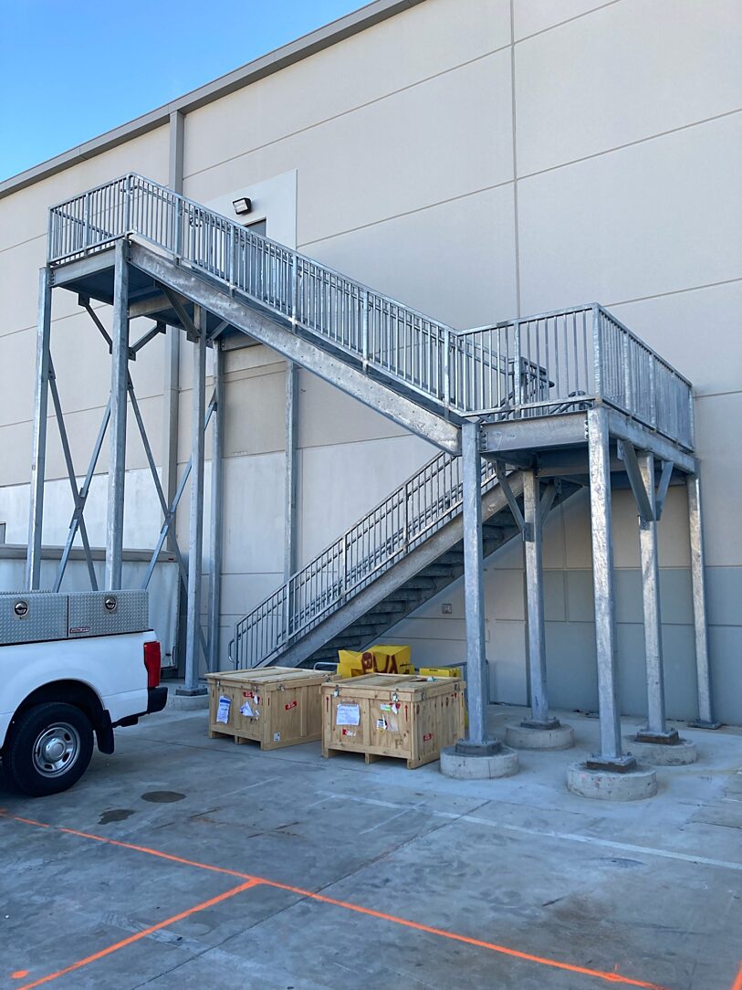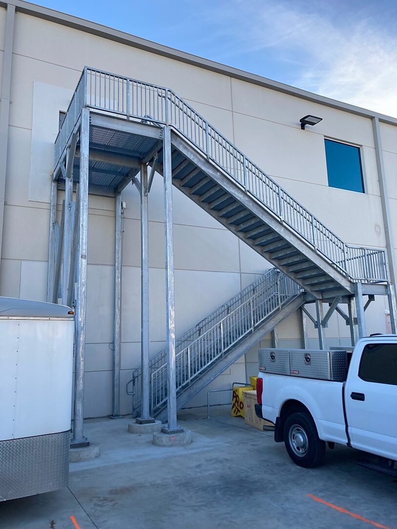 With the elevated entrance being 22’ in height, and lacking considerable space to work with, a half landing staircase was necessary. Grating is used as the steps and platform, while square tubing is used as the grabrail. These stairs will receive a lot of foot traffic and are externally exposed, therefore hot-dip galvanizing was chosen as the preferred coating because it offers durability, corrosion protections, and has the best life-cycle cost. When asked if there was another coating that was considered, the project manager on the job said “No, hot-dip galvanizing provided the best corrosion protection and the most efficient cost, and no other coatings will be required.” The project owner is pleased that this staircase will last for years to come, with no harm or safety concerns to pedestrians.
