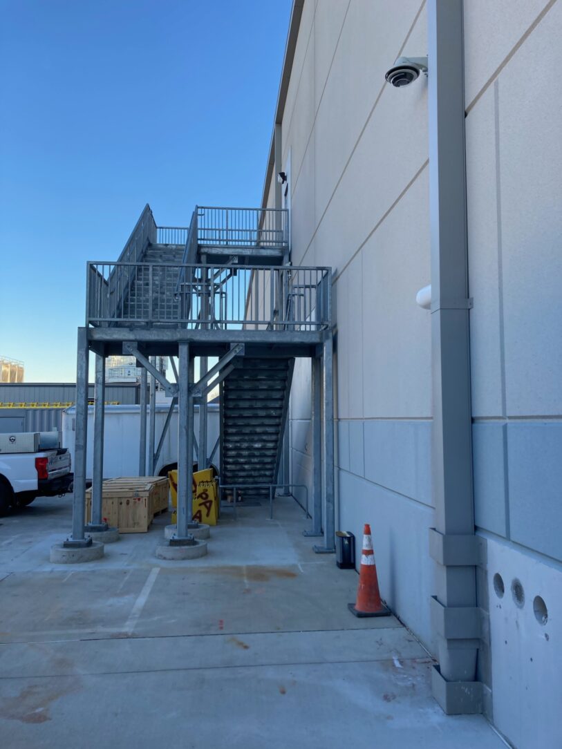 The Harmans/BWI campus of Catalent Pharma Solutions aids in Gene Therapy clinical manufacturing and laboratory testing. With close to 200,000 square feet, there was room to expand into the second level of part of the facility, which created a need for an exterior staircase. This new elevated entrance allows for equipment and personnel to enter conveniently into the elevated portion of the workspace.
