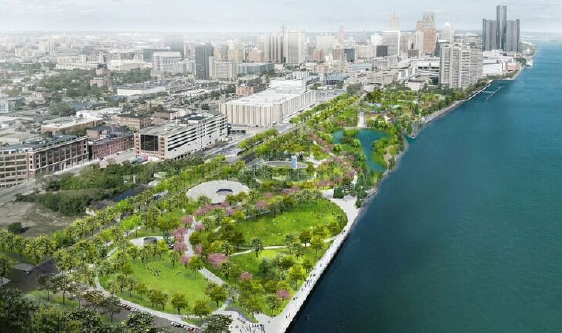 Matthew Cullen, chairman of JACK Entertainment and the Detroit Riverfront Conservancy, was the driving force behind bringing this park to life. The idea actually started more than 20 years ago when he was working at GM. He helped build the partnership between the City of Detroit, GM, and the Kresge Foundation, which eventually became the Detroit Riverfront Conservancy in 2003. Since purchasing the 22-acre site in 2007, the Conservancy and several charitable partners have invested roughly $80 million into developing the space. A major contributor was the Ralph C. Wilson Jr. Foundation, which honored the Detroit native with a $50 million gift dedicated to building and maintaining the park.