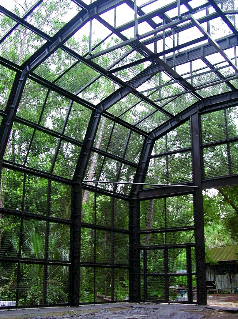 The habitat areas are large domed or barn-shaped structures made of hot dip galvanized steel beam, angle, channel, and plate, with heavy wire mesh used to create the side panels. Inside the habitats you will find an assortment of toys and swings, where the apes spend their days playing, eating, and napping. There is a concrete night house equipped with hot dip galvanized steel cages where the apes go at night to sleep, as well as a veterinary clinic on site.