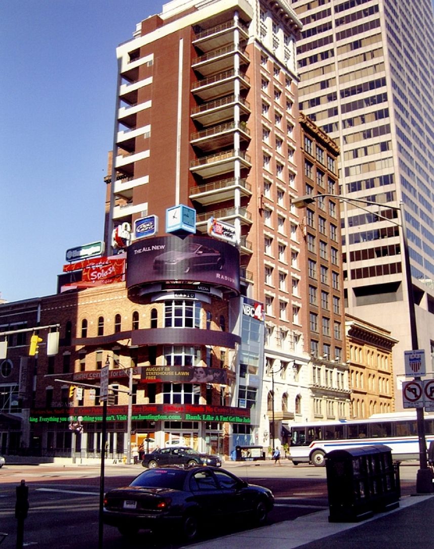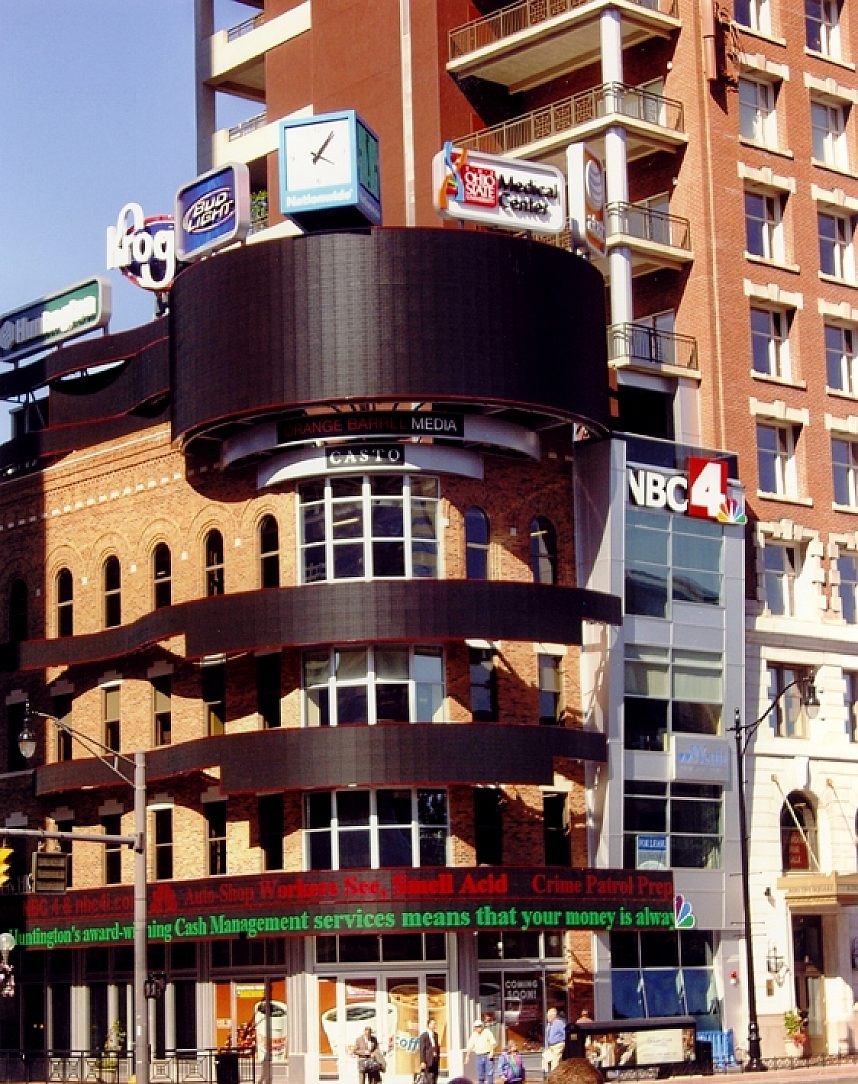 Illuminating downtown Columbus, the Channel 4 sign is supported by a galvanized structure and frame. The lighted sign is the mini Times Square of central Ohio. At night it gives light to the State Capitol building, the Theater District, and surrounding restaurants. Hot-dip galvanizing (HDG) was perfect for this project as it is able to withstand the corrosive atmosphere of Columbus. The longevity of structural integrity was also very important due to the costly electronic signage that it supports. The valuable sign contributes to the energy of the busy city below without adding to its maintenance list. With the support of HDG, the Channel 4 sign will play host to Columbus media well into the future.